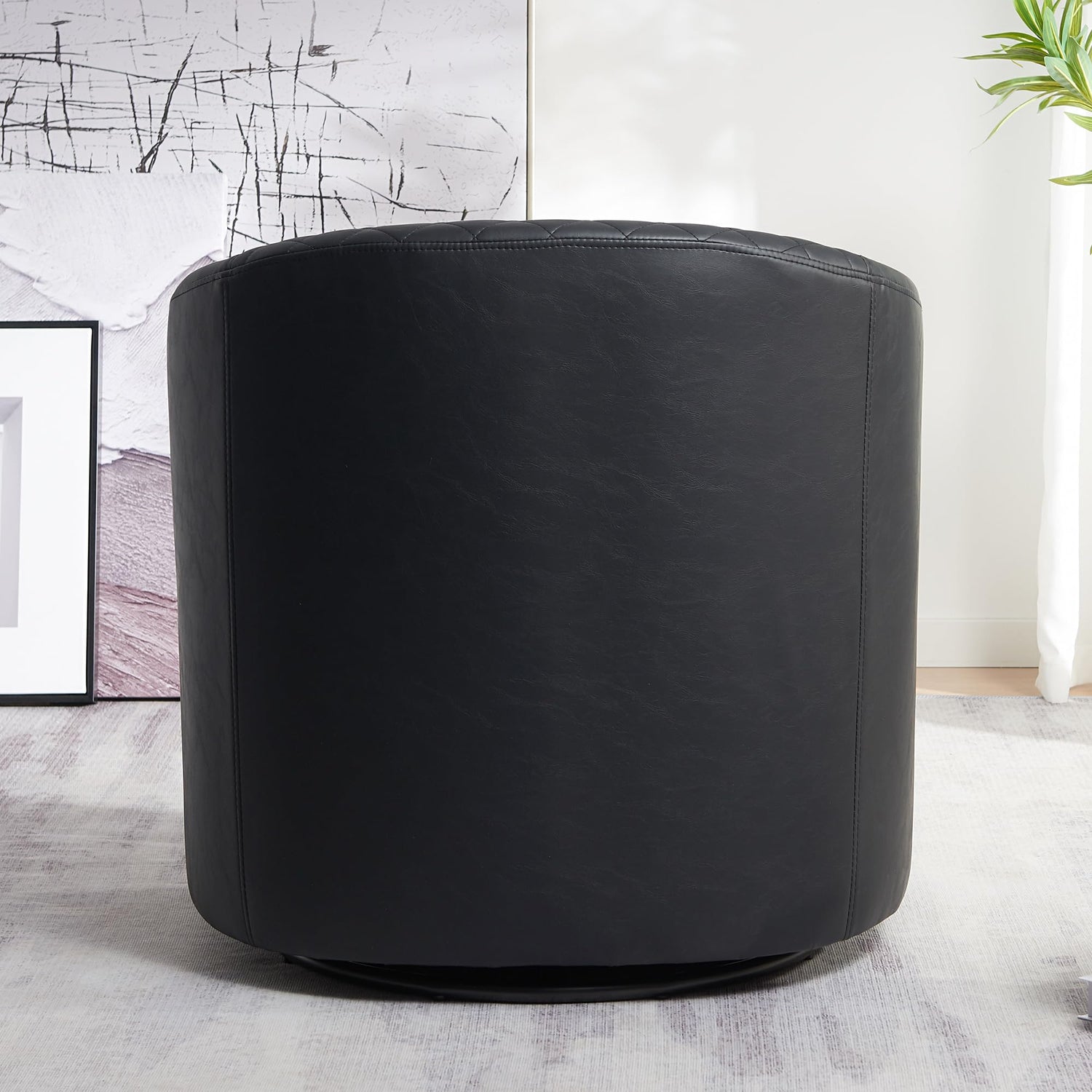 - 360-Degree Swivel Functionality: Enjoy the convenience of a smooth 360-degree swivel base that facilitates easy rotation, making this tufted faux leather barrel chair perfect for engaging with guests or turning towards a focal point like a fireplace, enhancing the chair's versatility in any setting.