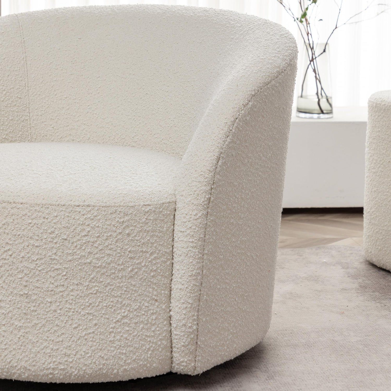 - HIGH-QUALITY BOUCLE UPHOLSTERY – This large Mid-Century Modern Swivel Barrel Chair is crafted with luxurious, popular boucle upholstery, providing a cozy, soft seating experience that instantly elevates your relaxation and comfort. Especially on cold days or when you are alone, bringing you the warmth of spring.