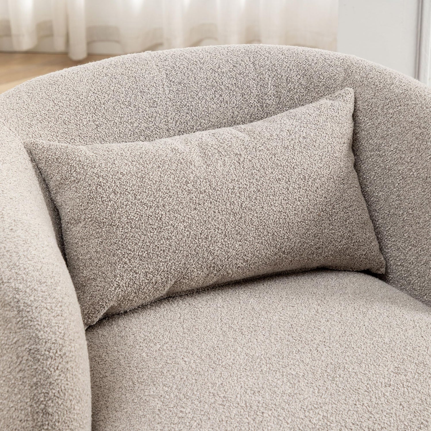KINWELL 34" Wide Boucle Swivel Barrel Chairs Set of 2, No Assembly Round Upholstered Armchairs Accent Chairs Single Sofa Chair with Toss Pillow for Living Room and Bedroom, Taupe