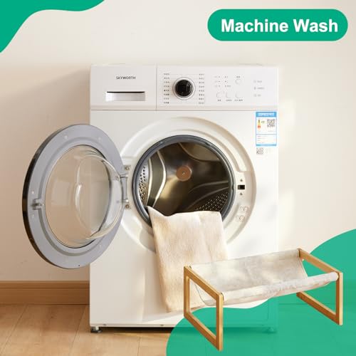 - 【Frame Material】The cat bed is made of pure solid bamboo wood, which is more stable and durable than plywood. Can easily hold up to 60 lbs. Dogs and cats won't rock when they turn over in the elevated cat bed, ensuring they can sleep peacefully.