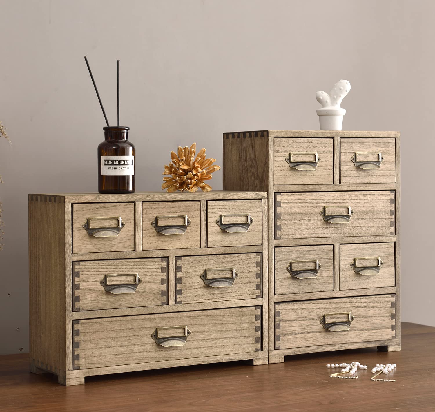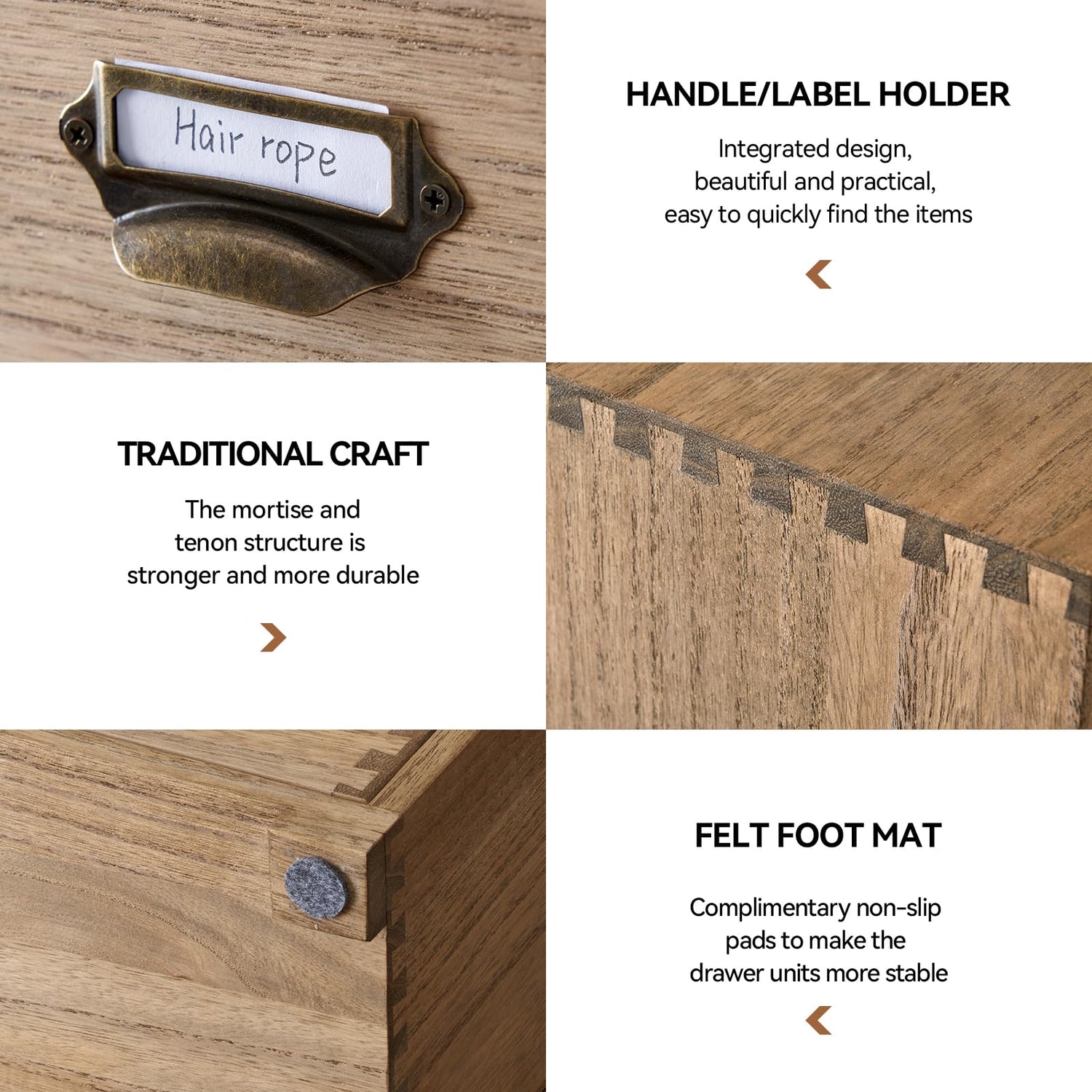 - [CUTE DESIGN] This wooden storage cabinet comes with 6 mini drawers, And each drawer has a metal handle and lable holder which is easy opening and searching.