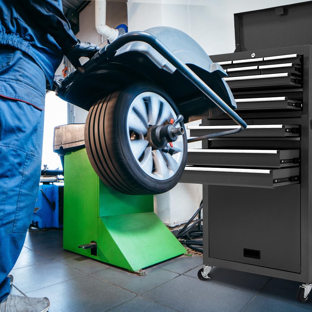 Kirmosal 13 Drawer Tool Chest,Toolbox with Wheels, Rolling Tool Cabinets with Drawers, Top Detachable Tool Chest with Hooks Handles for Workshop Mechanical Garage - Black