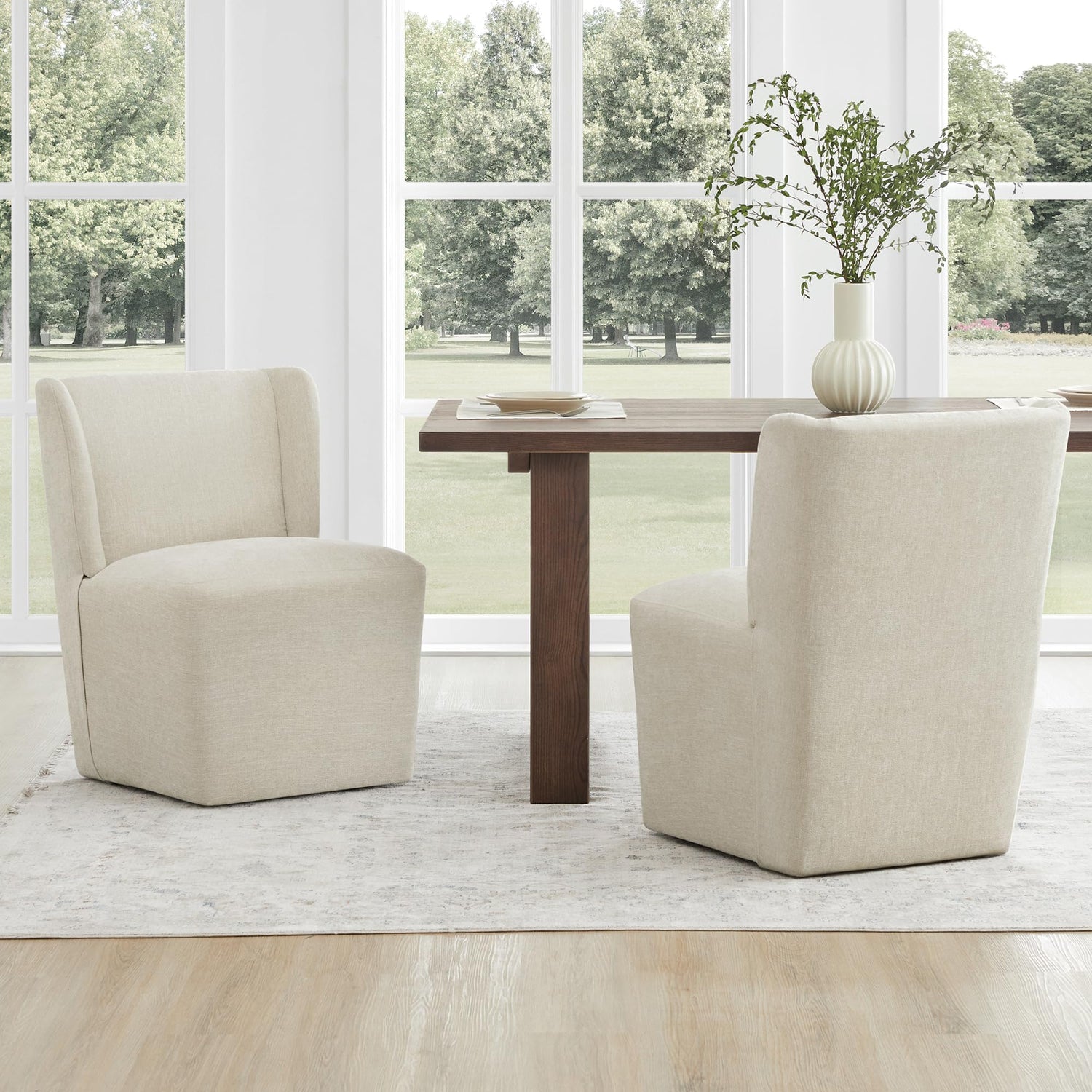 KISLOT Upholstered Dining Chair with Casters Wingback Modern Side Armless Deskchair with Rollers for Diningroom Bedroom Livingroom Reading Room,Cream Beige,2 Box