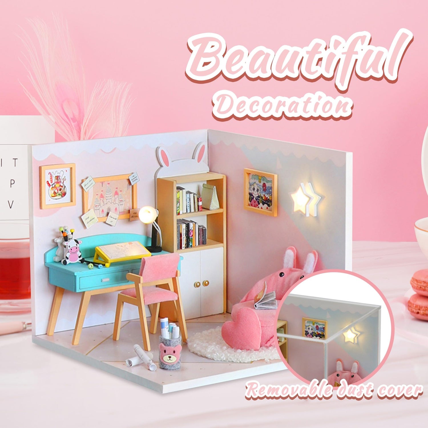 - 【Charming Home Decor】 More than just a craft project, this mini dollhouse becomes a beautiful home decor piece. The detailed miniature furniture and glowing LED lights create an enchanting display on any shelf or table, adding cozy vibes to your home or office.