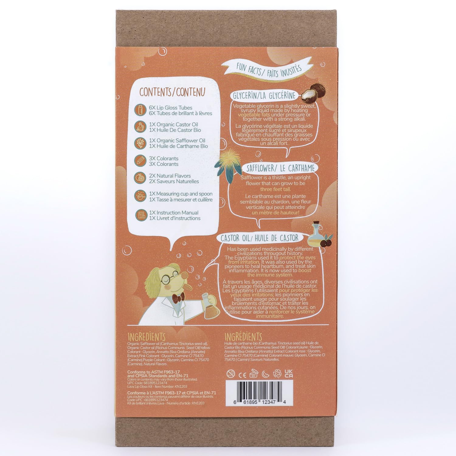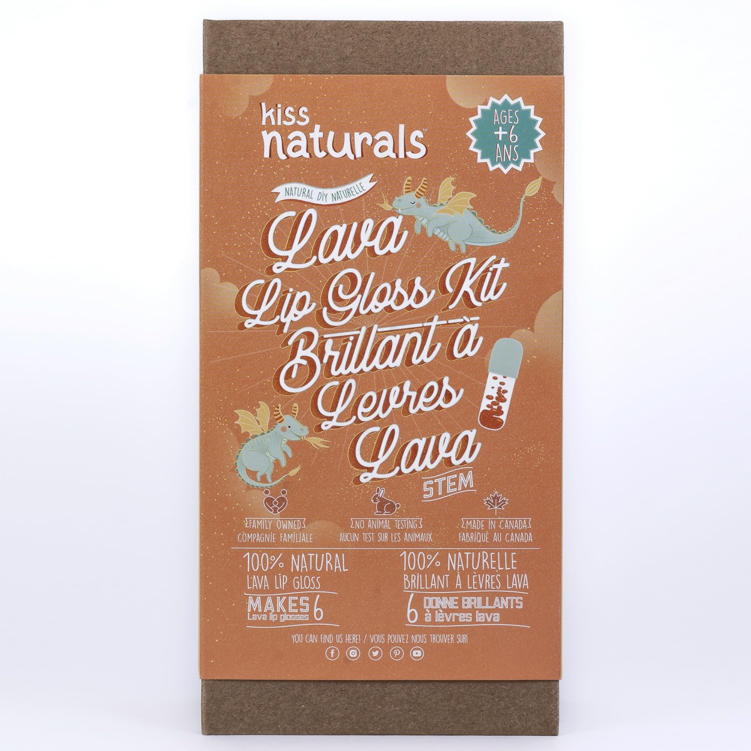 Kiss Naturals - Lava Lip Gloss Kit - With Organic Castor Oil, Safflower Oil, Coconut Oil - STEM DIY Science Kit - Make 6 Lip Gloss - 2 Natural Flavors - Birthday, Holiday, Party Gift for Girls