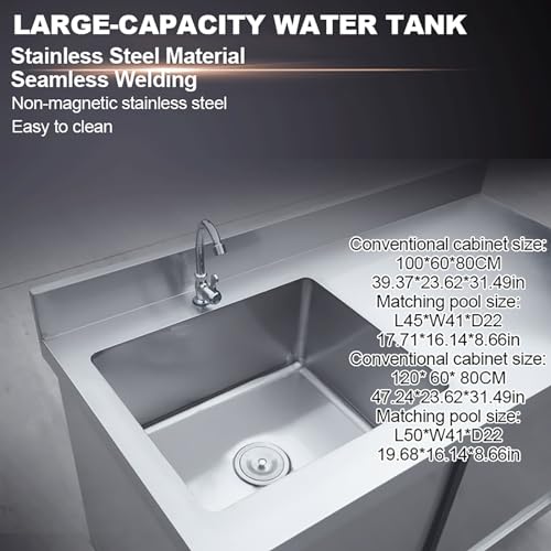 Kitchen Cabinet with Sink Laundry Sink with Cabinet Freestanding Utility Sink with Faucet Outdoor Stainless Steel Sink with Workbench and Storage Cabinet for Restaurant Laundry Room.(120x60x80cm)