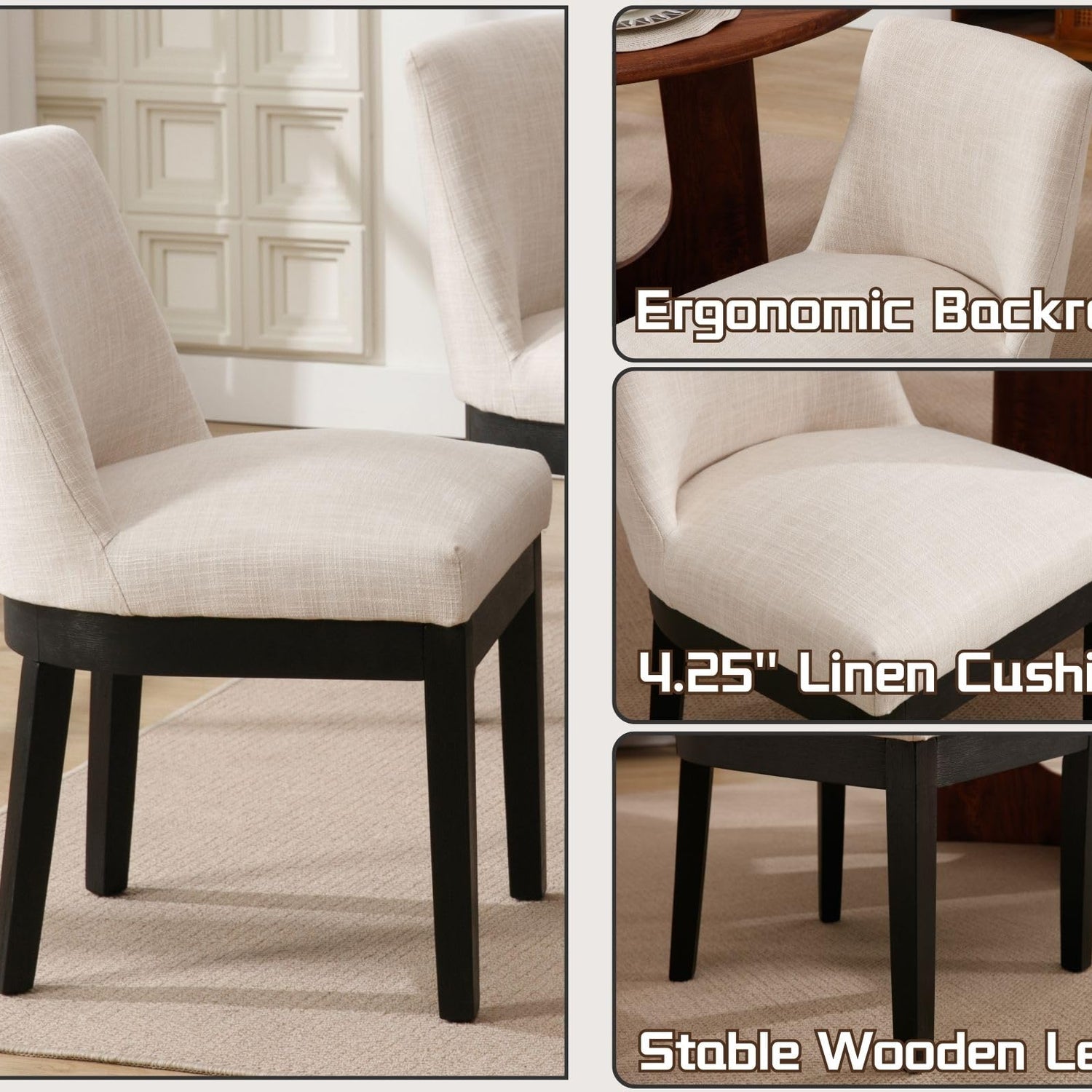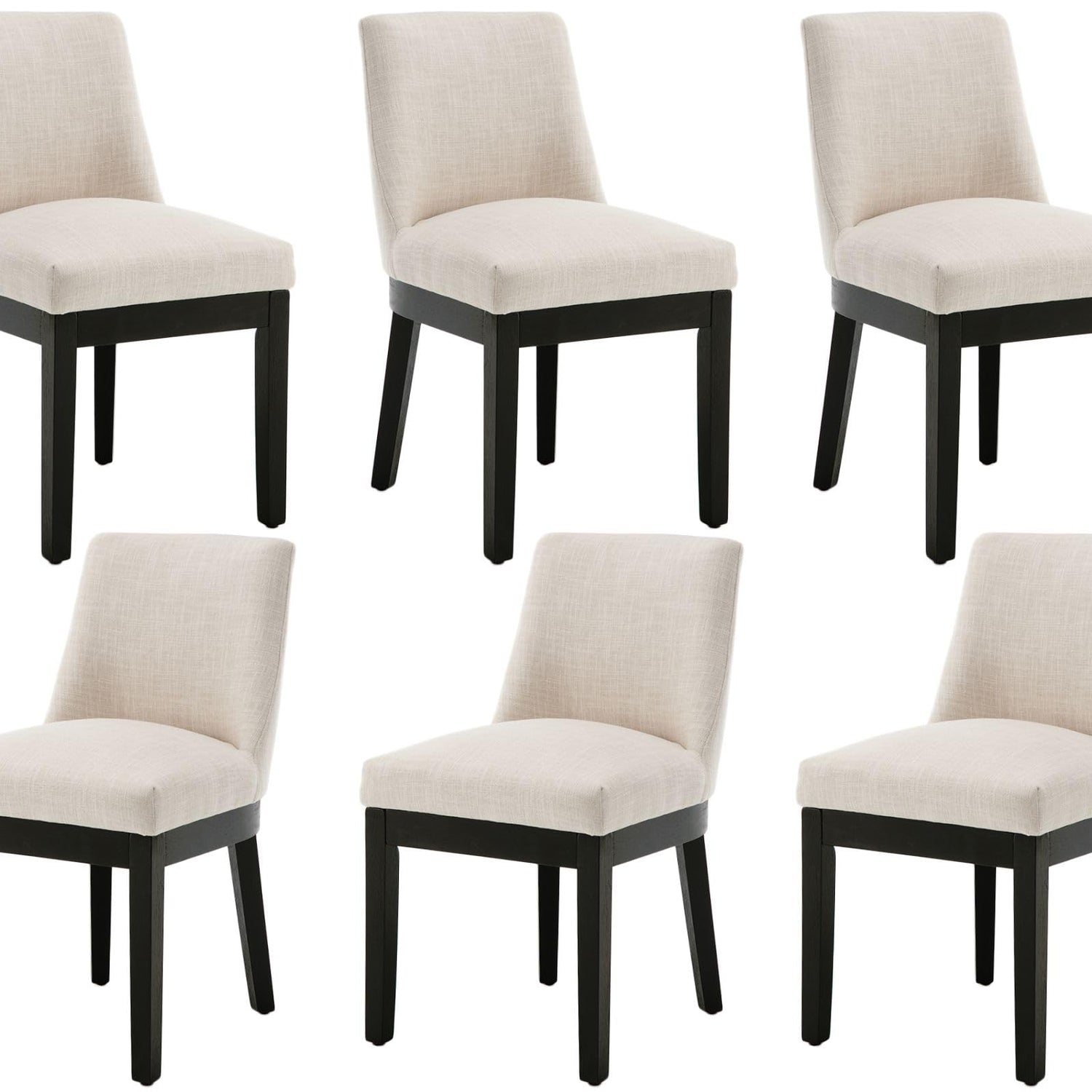 Kitchen & Dining Room Chairs Set of 6 Farmhouse Wingback Kitchen Chairs Modern Linen Fabric Upholstered Dining Chairs with Black Wood Legs, 18’’ Wide Accent Side Chairs for Living Room/Bedroom, Beige