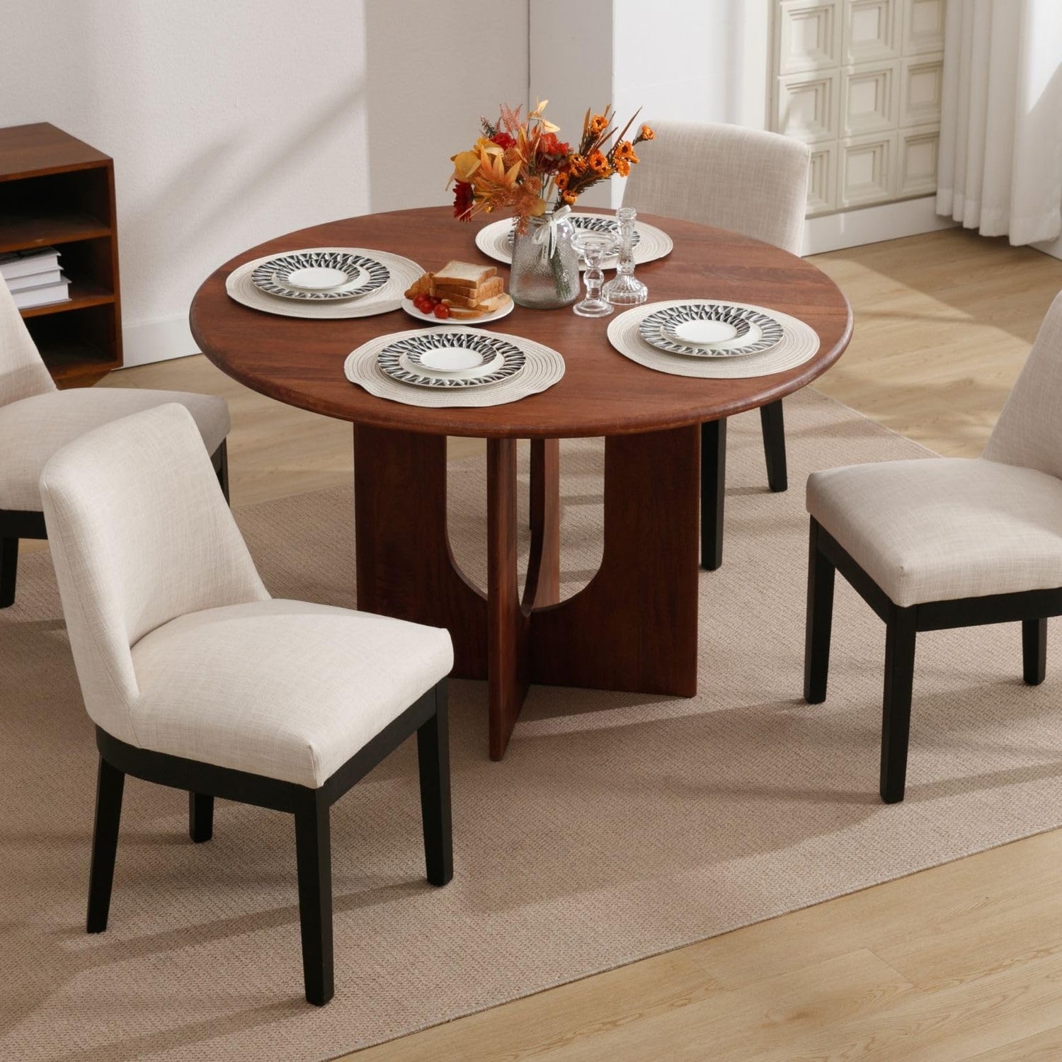 - 🪑STUDY BASE: This sturdy and beautiful accent dinning chair will definitely fit into your comfortable little home, and you will never regret buying it. The solid wood legs adopt a brushed process, with a retro style and durability. High quality solid wood chair legs can provide a more stable seating experience, which is durable and very sturdy, capable of sitting up to 250 pounds.