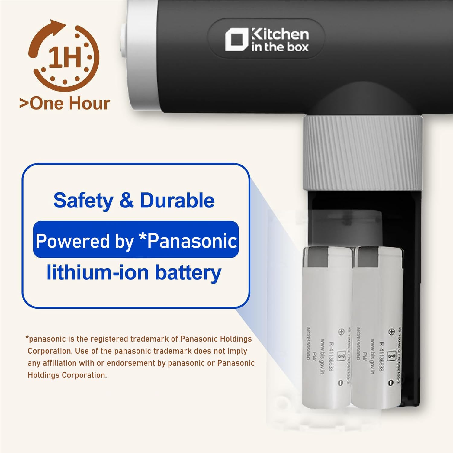 - Safe & Durable Battery - Our compact cordless mixer for baking equipped with high quality lithium-ion battery, providing stable charging and comprehensive protection for you and your device. Large-capacity battery can be used for more than 1 hour on a full charge