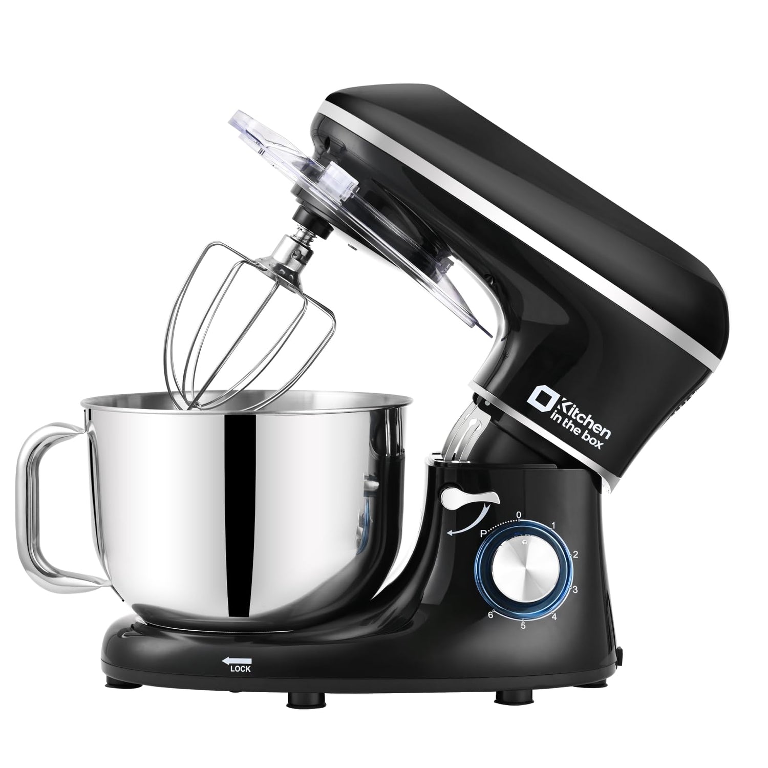Kitchen in the box Stand Mixer, 6.5QT 660W Electric Kitchen Mixer, 6-Speed Tilt-Head Food Mixer with Dough Hook, Wire Whip, Beater, Dishwasher Safe (Black)