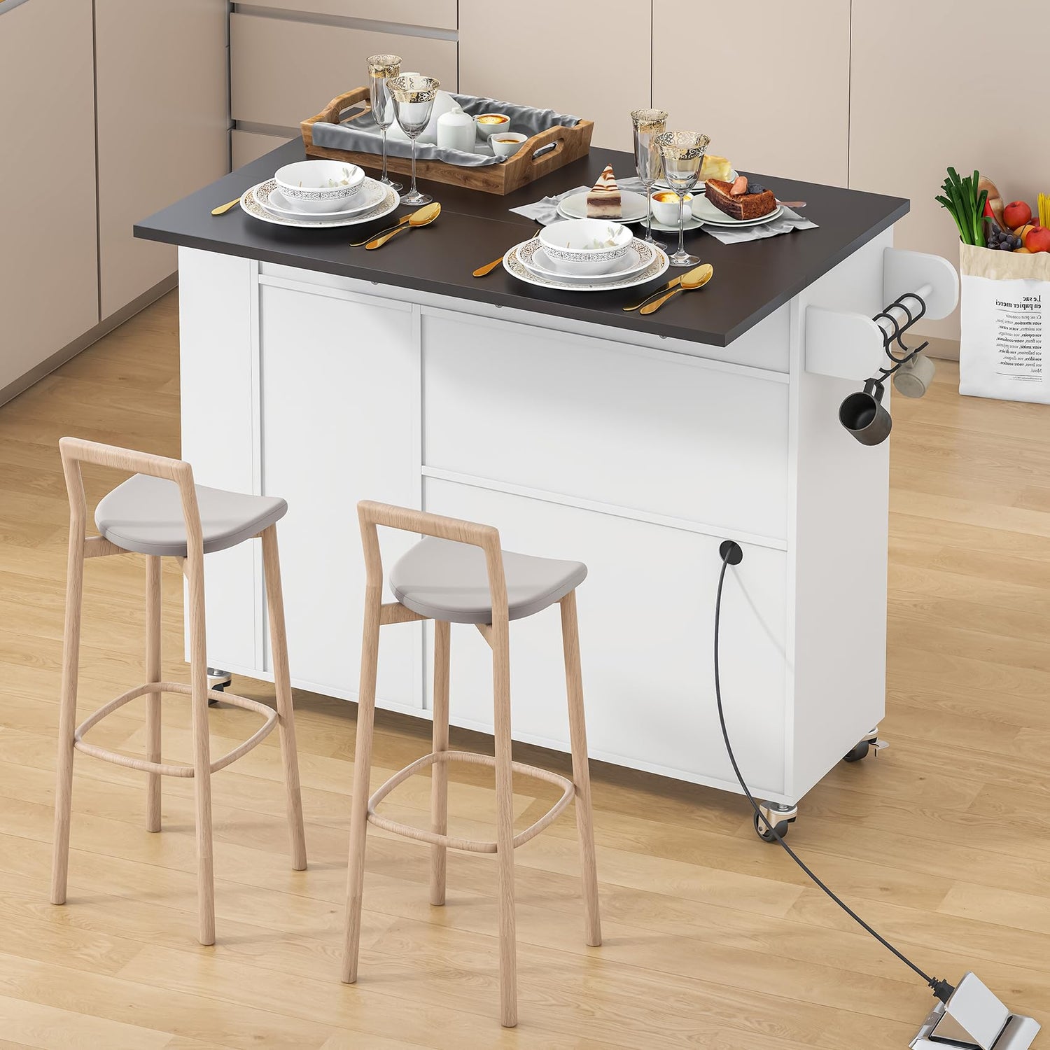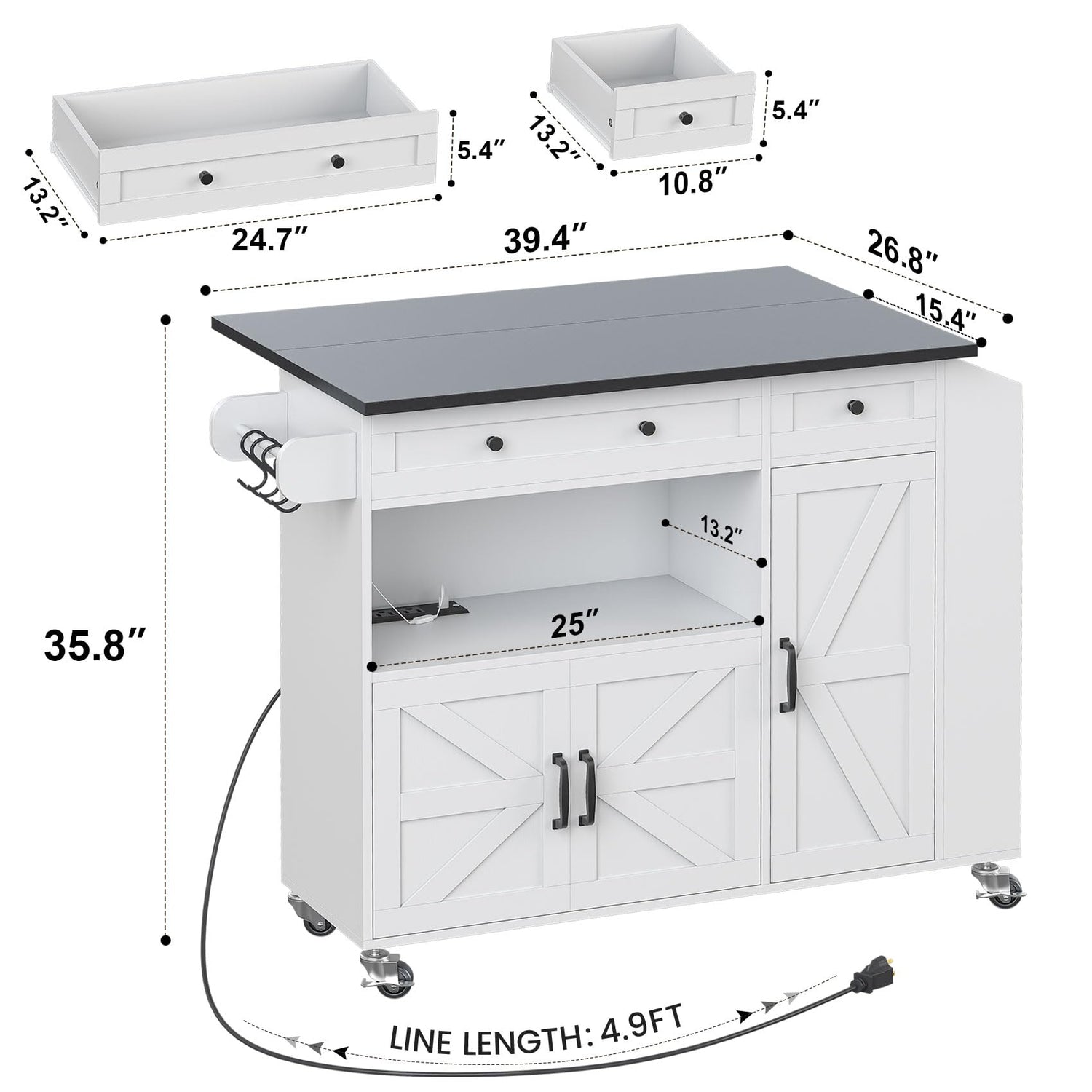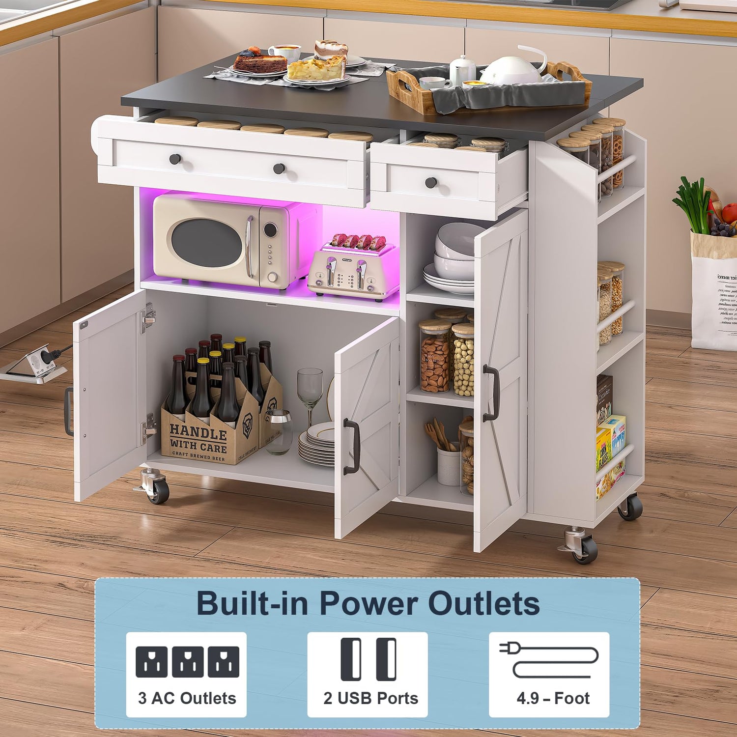Kitchen Island with Drop Leaf, Rolling kitchen island with power outlet and Led Light, Kitchen Island with Storage Cabinet, Spice Rack, Drawer, Towel Rack, kitchen island on wheels for Dinning Room