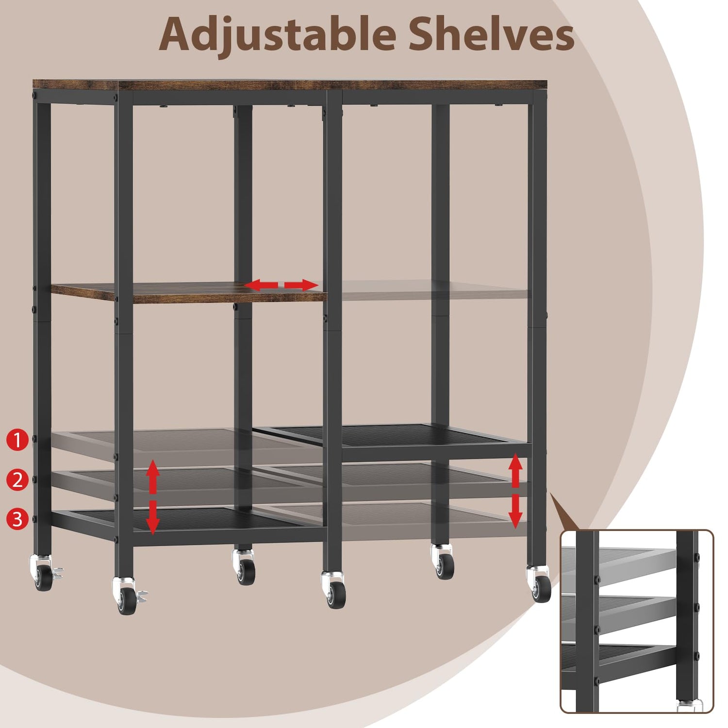 • Kitchen Carts on Wheels with Storage:The brown storage cart features 3 shelves and 6 wheels, each designed to roll smoothly and swivel 360° with a locking feature for easy maneuverability around your home; Additionally, this kitchen storage trolley is equipped with 6 adjustable feet to prevent scratches and adapt to uneven floors