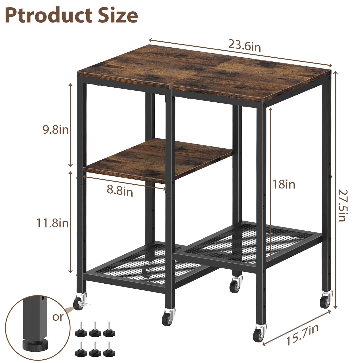 • 4 Tier Storage Space Shelf:This 4-tier microwave cart with storage comes with a large wooden board and two adjustable metal mesh tiers for multiple storage options; With pre-drilled shelves to accommodate items of varying heights, this kitchen island storage cart can hold your coffee maker, microwave, toaster,printer, store a variety of daily essentials or cookware is the ideal solution for organizing and keeping your kitchen, living room or office space clean