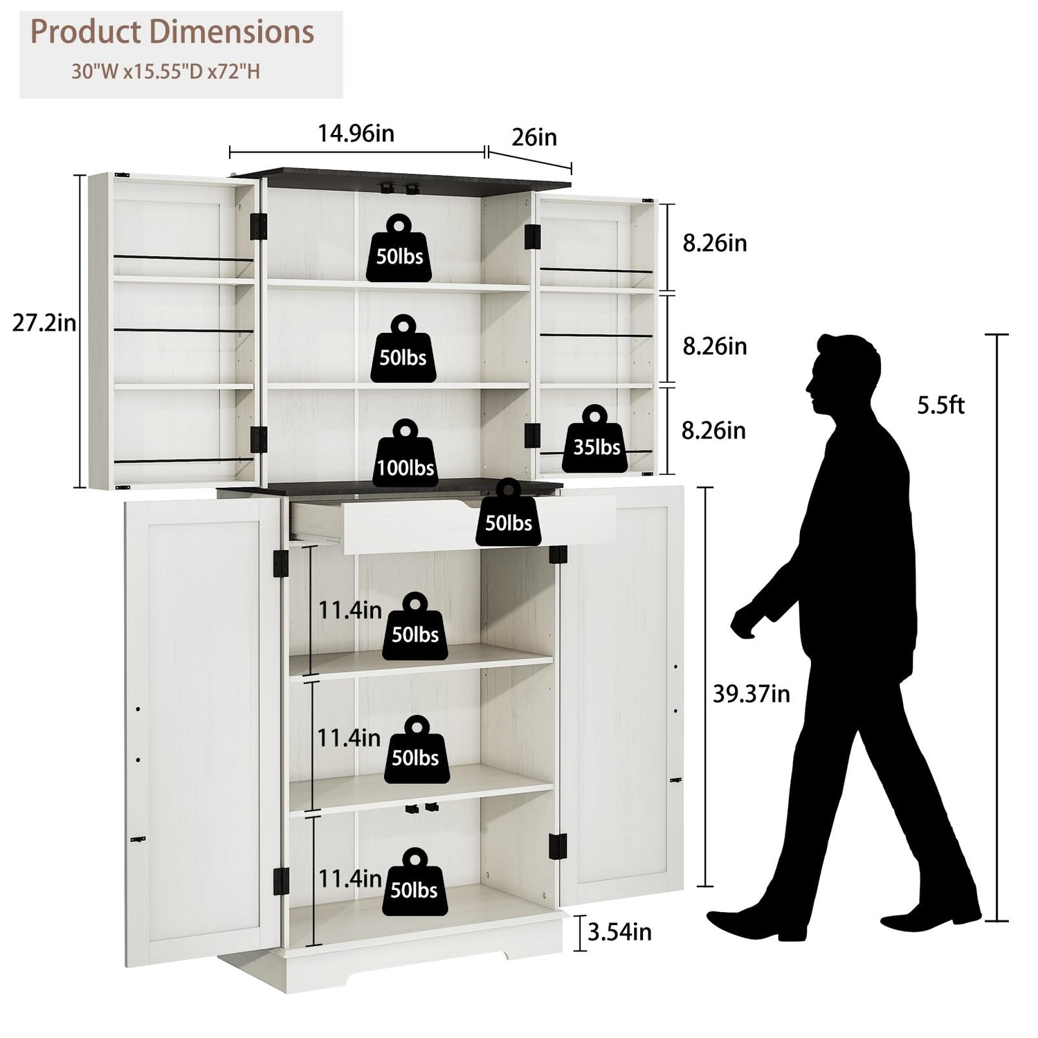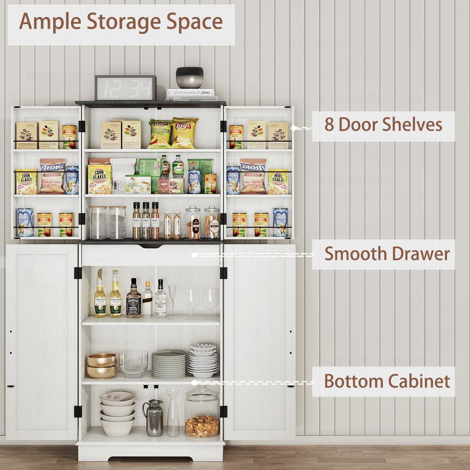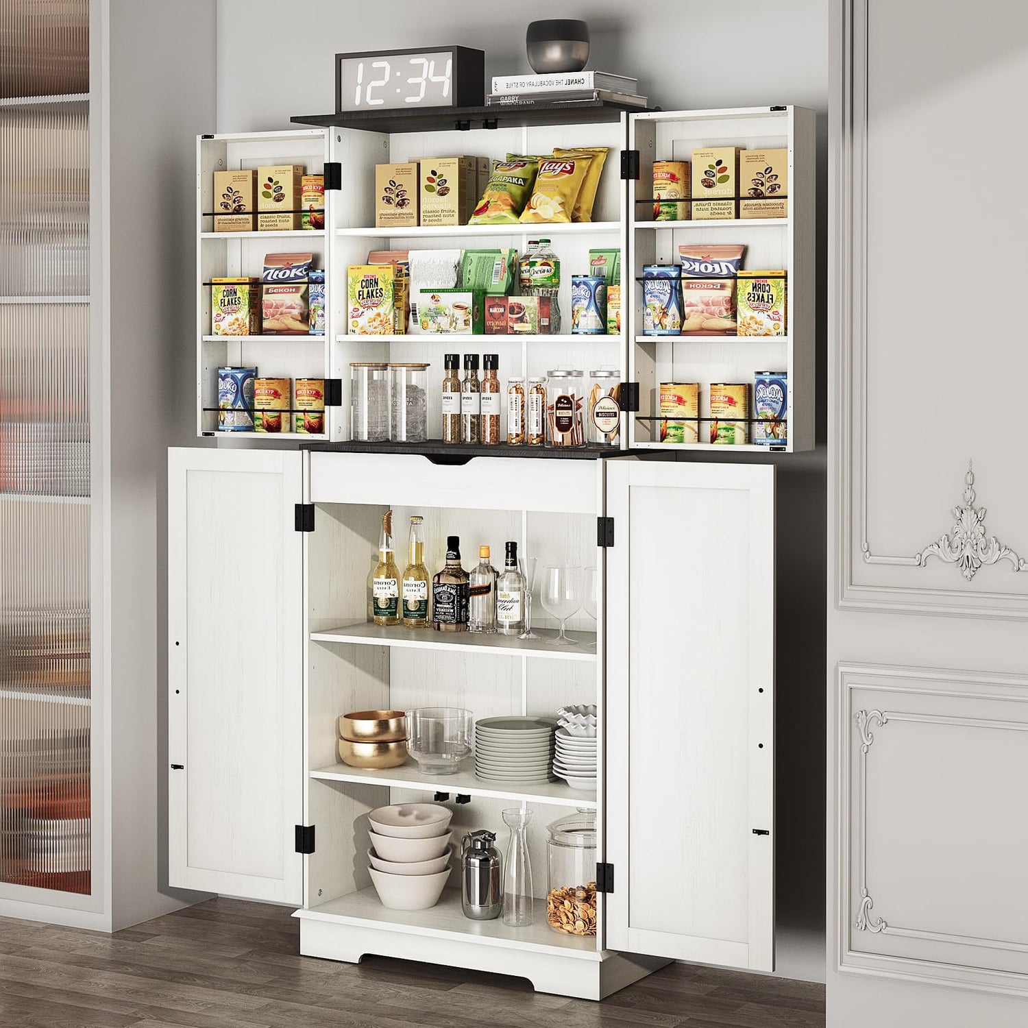 - 【Plenty of Storage Space】Featuring 2 large cabinets, a large slide-out drawer, and 6 door shelves, this pantry cabinet can hold everything from food and dishes to kitchen utensils, no matter where you place them.