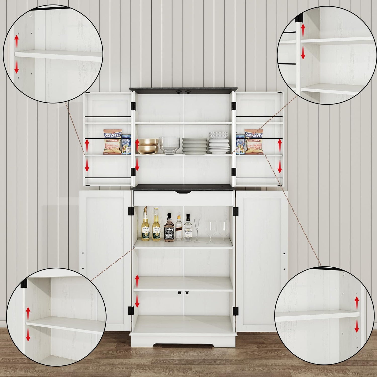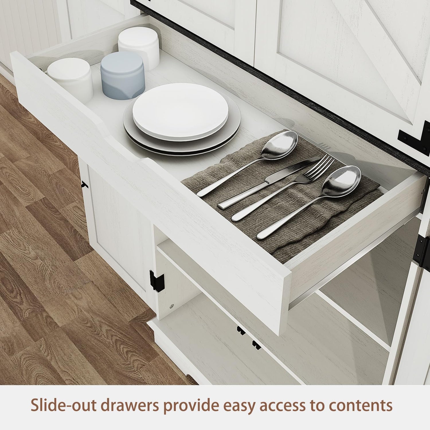 Kitchen Pantry Storage Cabinet,72" Freestanding Cupboard with 4 Barn Doors,Drawer and Adjustable Shelves,Wood Food Pantry for Kitchen, Dining Room, Bathroom,White