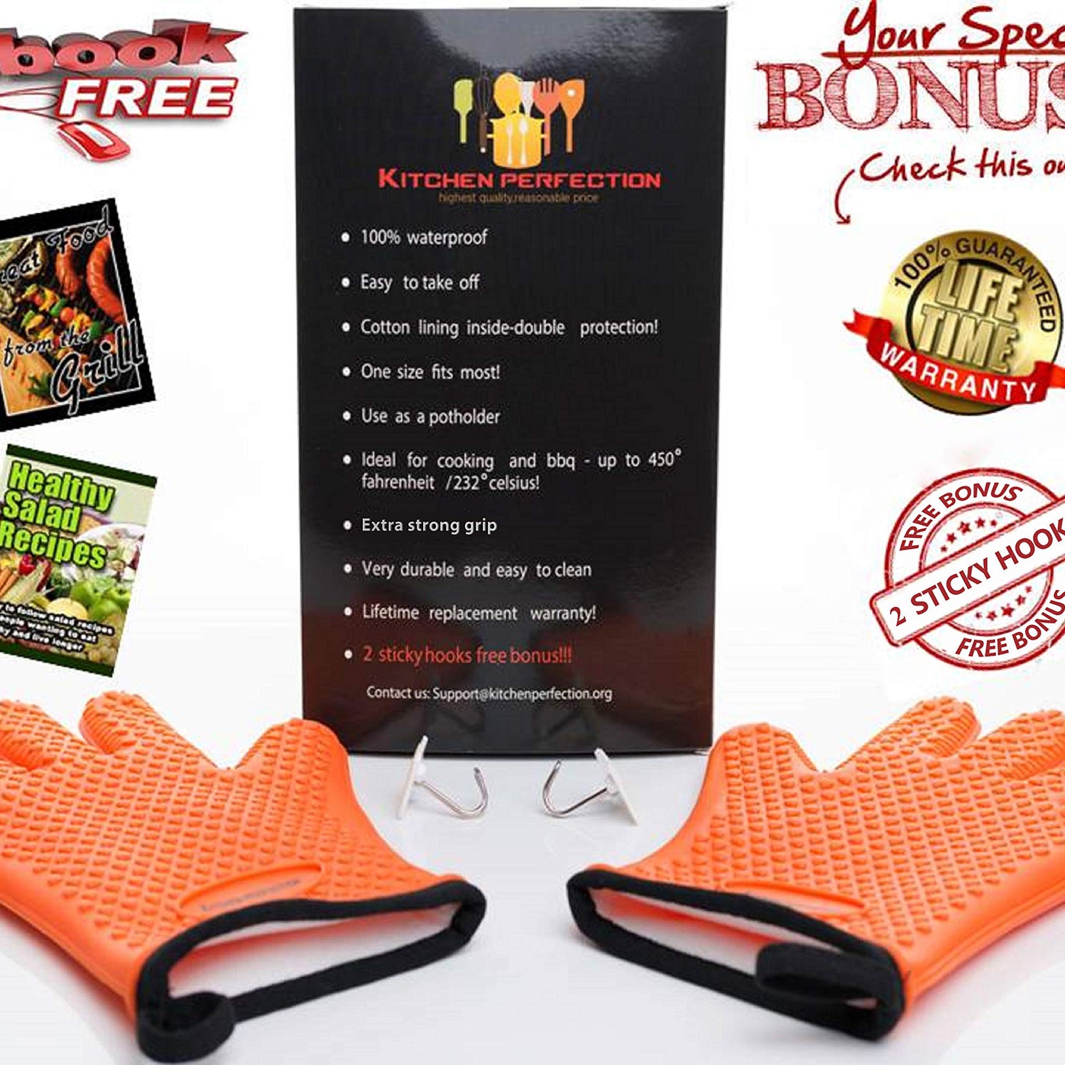 - Lifetime Warranty By Kitchen Perfection - If you feel that you didn’t get the best product you are more than welcome to contact us, we are here for you for any problem, sizing issues, and more. These are the best barbecue gloves for heat-resistant cooking for men's and women's protective mitts. That's why everyone likes them so much! You better get a few to give to your friends as a gift.
