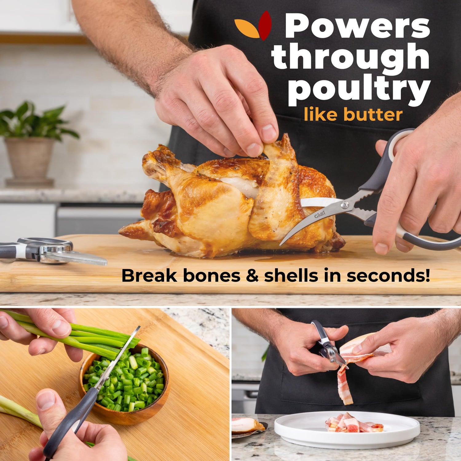 • Perfect for Meal Prep and Beyond – Cut through raw poultry, trim herbs, or open packaging with the ultra-sharp, heavy-duty blades. Gidli kitchen shears are also great for trimming flowers, cutting cardboard, or even as garden shears, making them a must-have household tool.