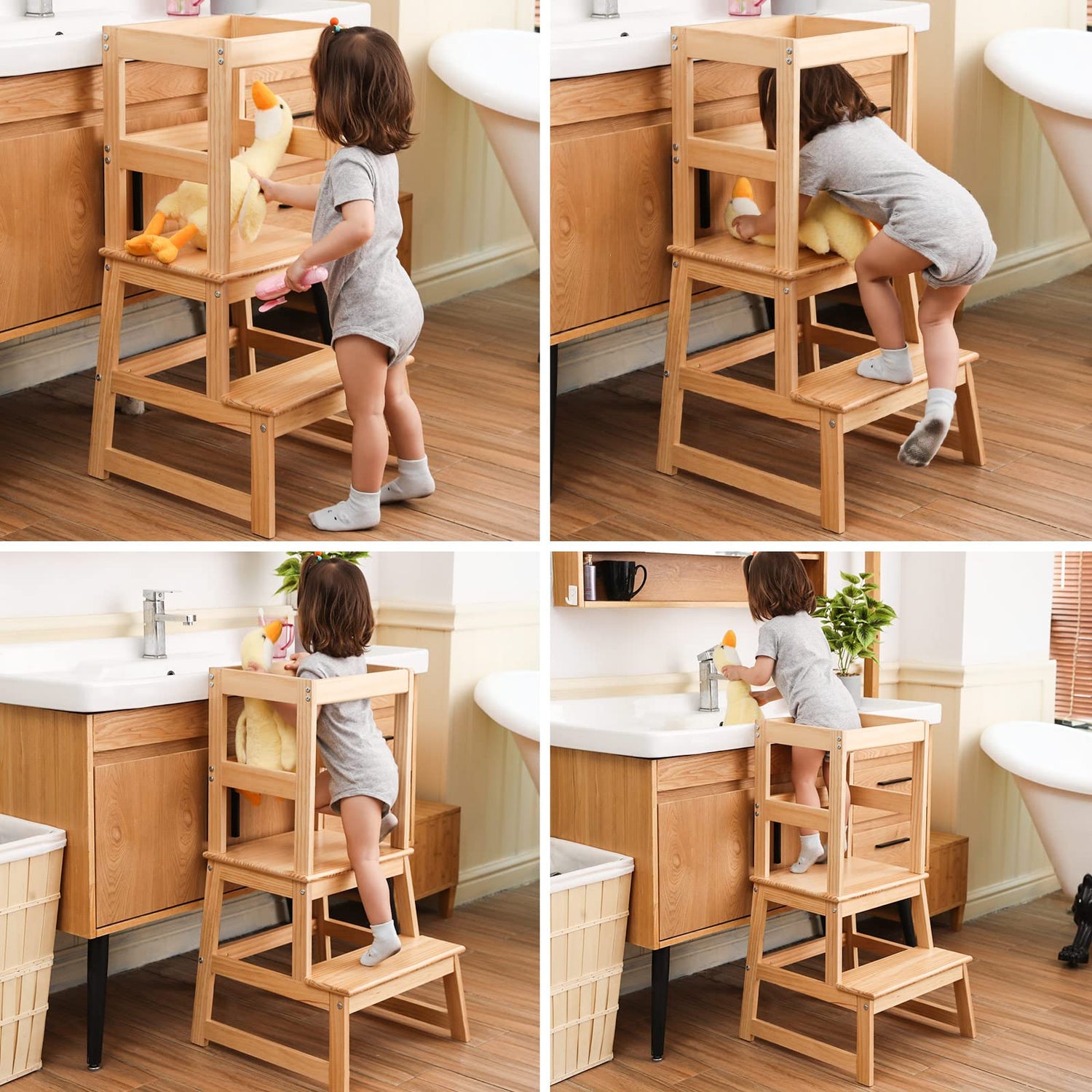 - ❤️❤️ Elevate your baby to counter height,teach them cooking skill to get littler helper in near future.Make your kitchen full of fun! Also,you could put it in washing room so kids can brush teeth by themselves.
