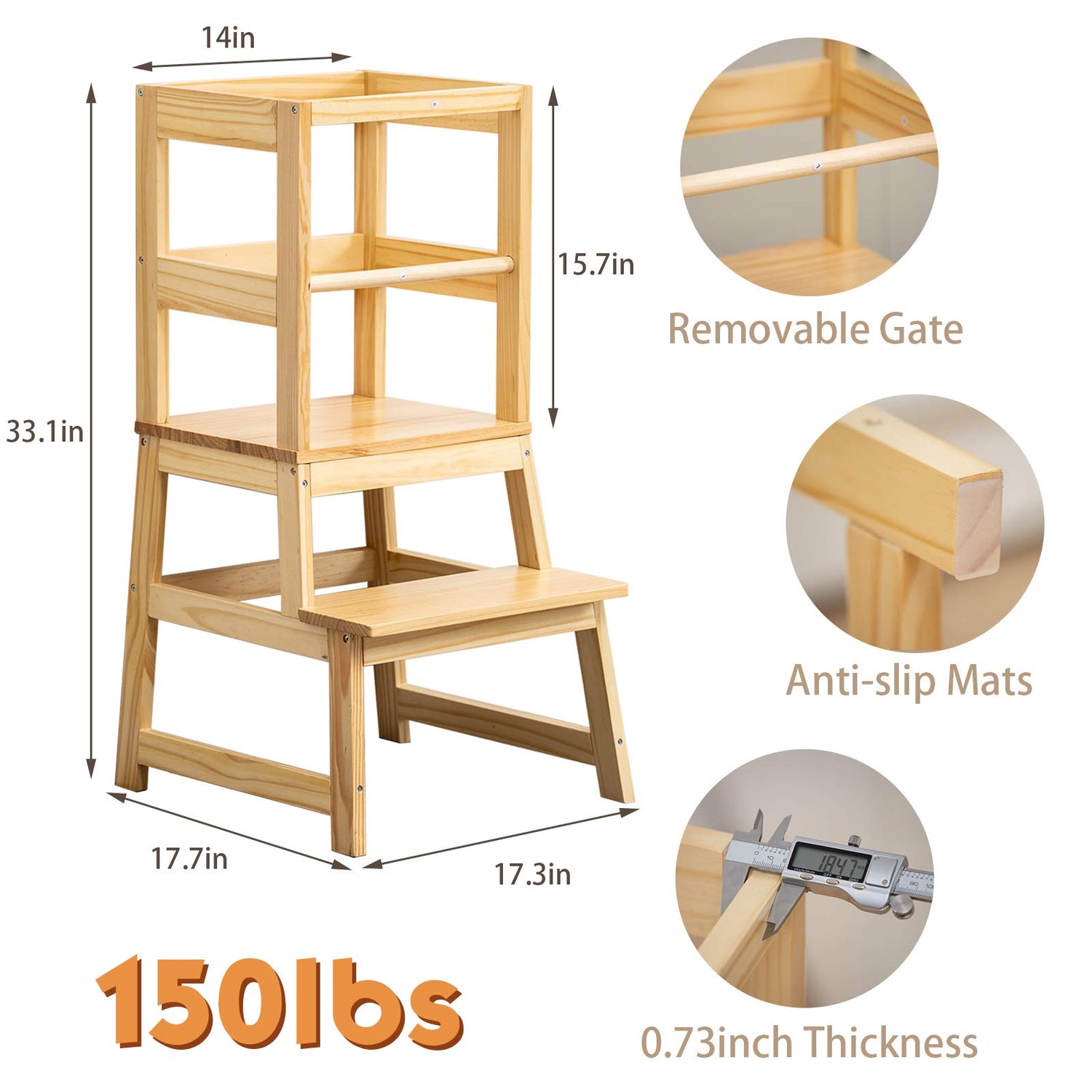 - Made to Last: This durable tower stool for learning is made from solid pine wood with a child-safe, non-toxic finish that prevents scratches and scuff marks. Safely supports 150 lbs.Recommended for toddlers 18 months to 5 years old