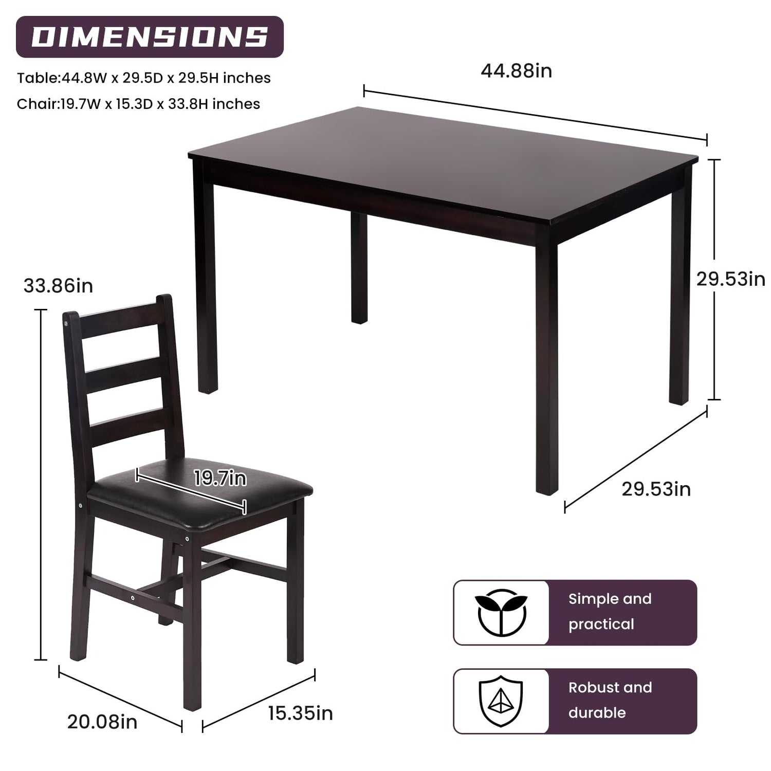 - 【Durable & Comfortable】Choose high quality kitchen furniture, our solid wood dining tables are designed for durability and longevity. The pu kitchen chairs have a supportive backrest and ergonomically designed curves for extra comfort.