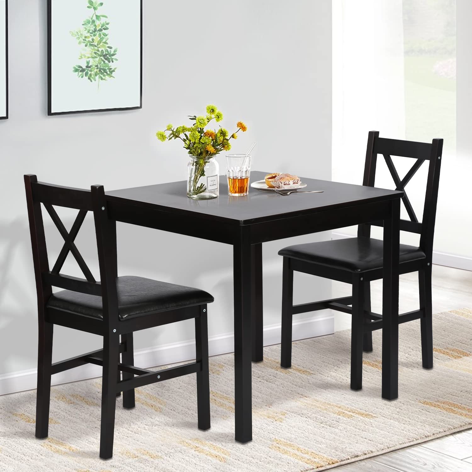 Kitchen Table Set for 2, 3 Piece Wooden Dining Table Set with 2 Chairs for Small Space, Modern Square Counter Height Small Dinette Set for Kitchen, Restaurant, Dark Brown