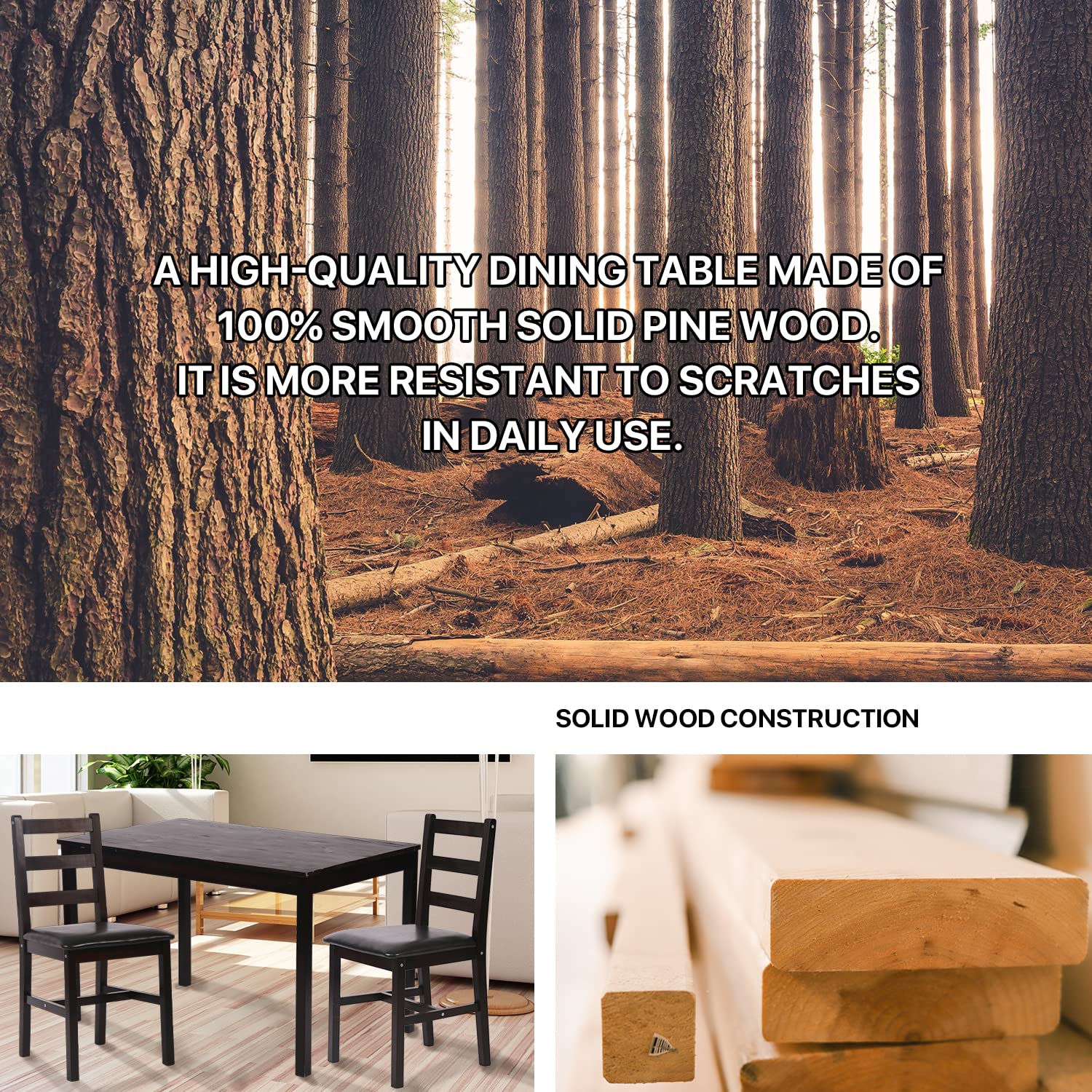 - 【SOLID & DURABLE】Prime quality dining table set which made of solid wood. which has uniform density, high-temperature resistance, and is not easy to deform, the sturdy frame ensures years of service and untimely wear. Our 3 peices kitchen table set are specially coated to make the tabletop smooth, easy to clean and have a good touch experience. The samll kitchen table is equipped with adjustable foot pads to keep balance even on uneven floor.