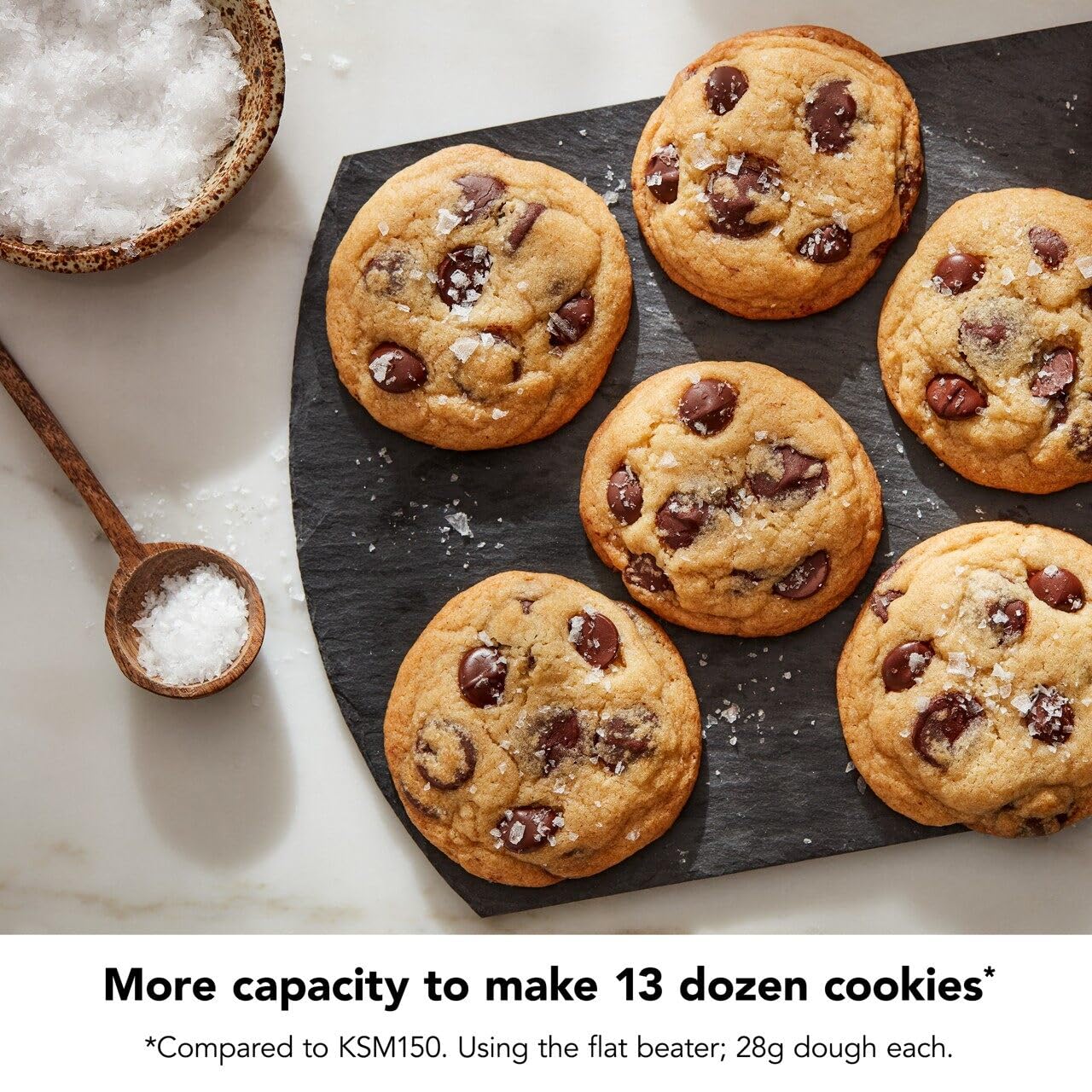 - With 7 quart capacity, you can easily mix 13 dozen cookies per batch*, knead over 8.5 lbs of bread, or mash over 7.5 lbs of potatoes. *Using the flat beater; 28g dough each.