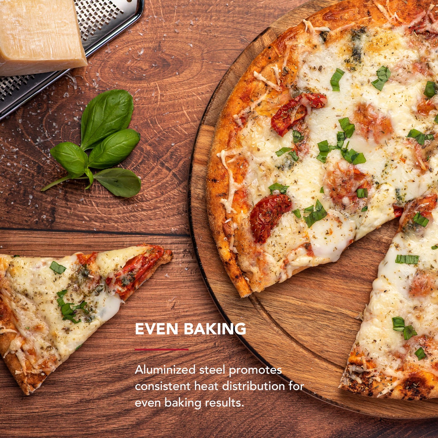 - EVEN BAKING: Aluminized steel construction promotes consistent heat distribution across the pan, allowing for evenly baked desserts and perfectly roasted dishes