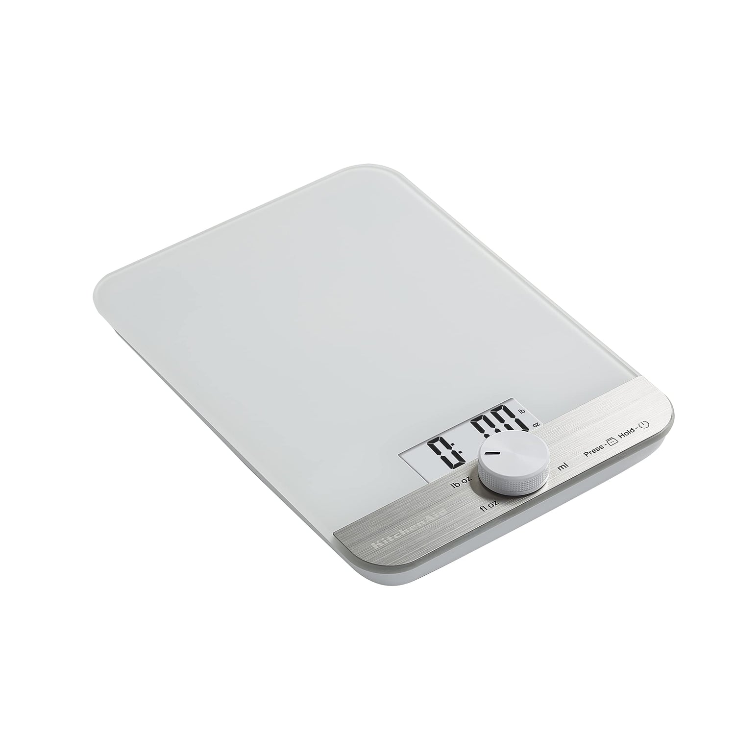 KitchenAid KQ908 Glass Surface 11 Pound Capacity Digital Kitchen and Food Scale, White