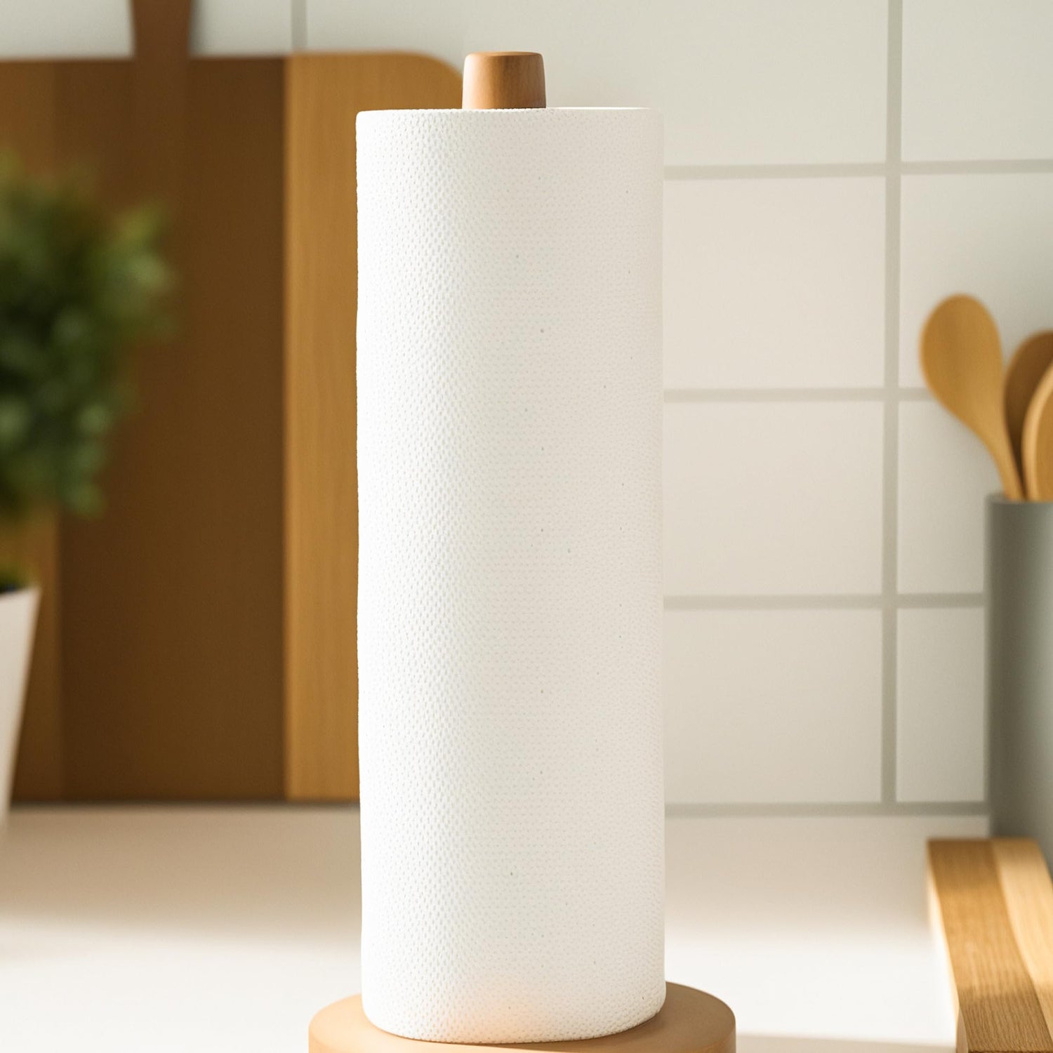 - Upgrade your kitchen with our beautifully crafted wooden paper towel holder. Made from high-quality beechwood, it features a sleek and simple design that complements any kitchen decor.