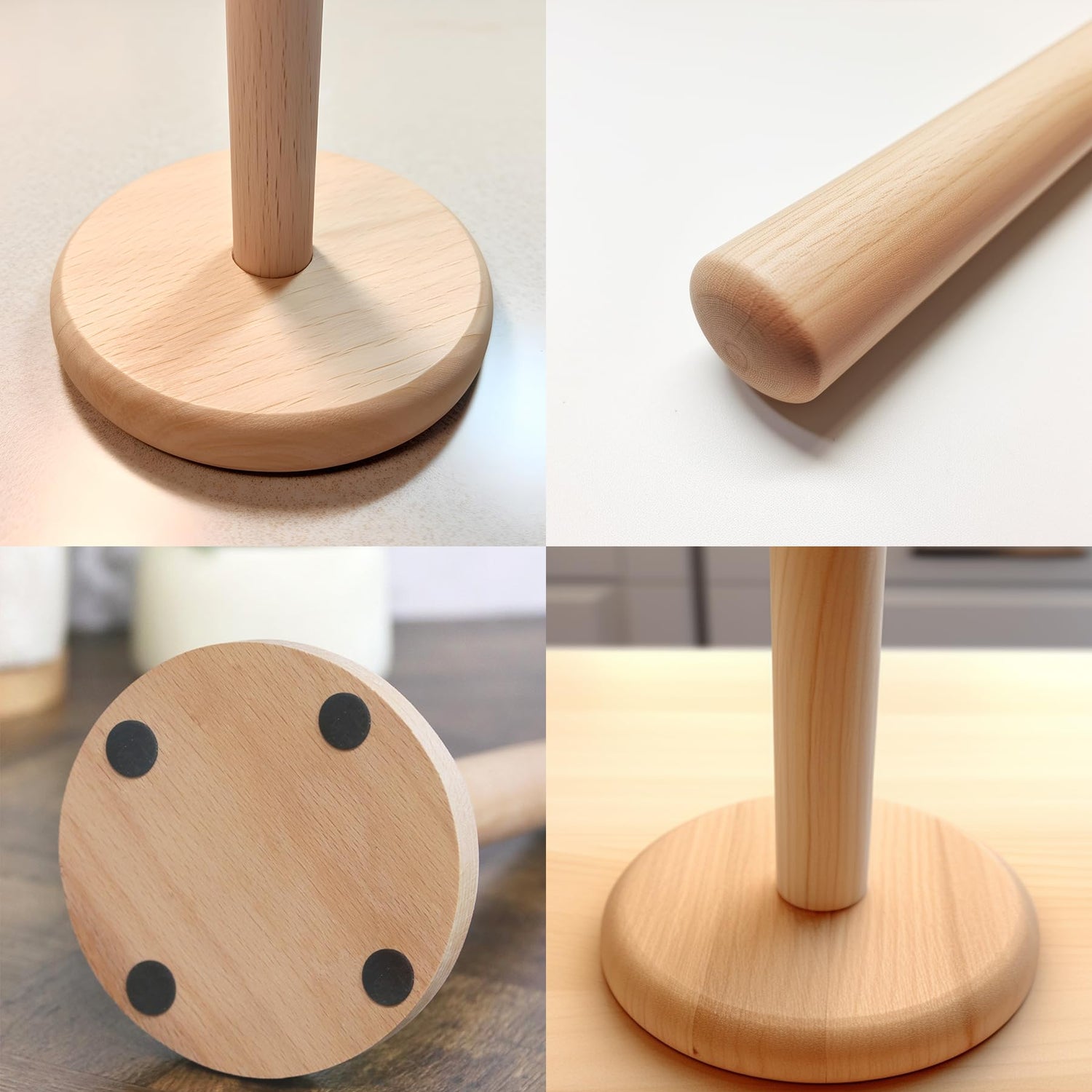 KitchLife Wooden Paper Towel Holder Countertop - Solid Beechwood Paper Towel Dispenser Stand with Anti-Skid Base