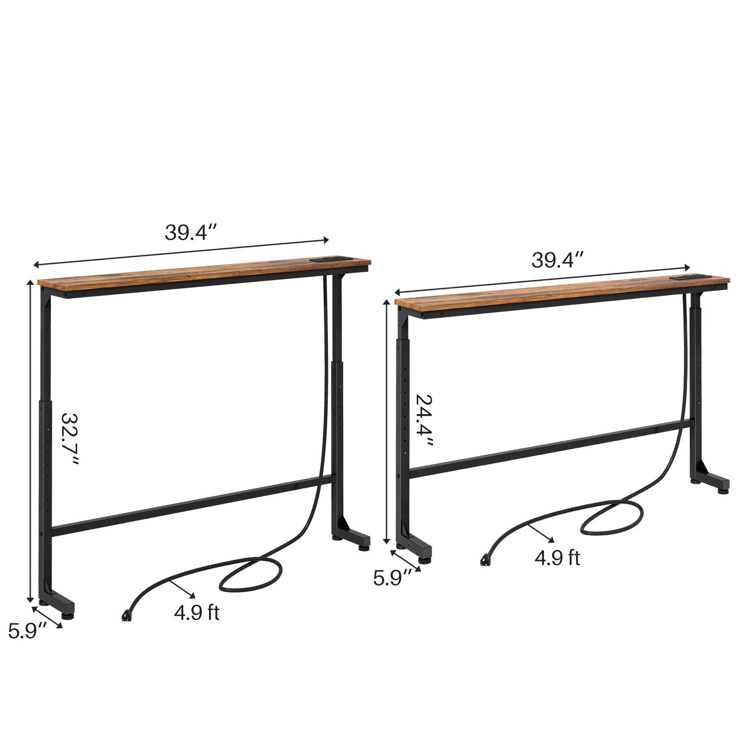 Kitstorack 2-Pack Narrow Console Table with Adjustable Height (25"-33") & Power Outlets, Rustic Brown Sofa Table for Behind Couch or Wall, 79" Long with 4.9ft Cord