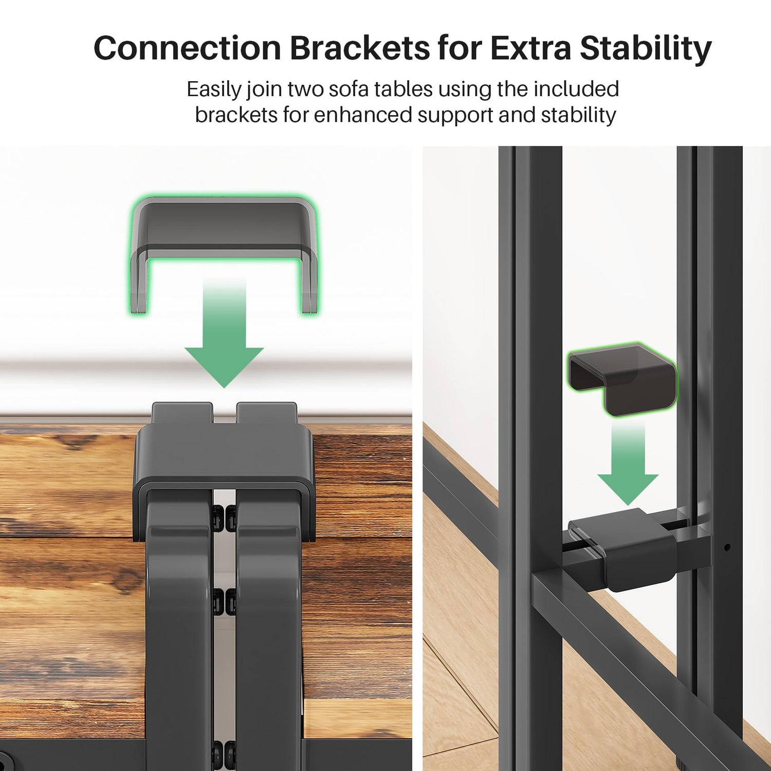 - ✔️Enhanced Stability: This sofa table includes thickened connectors on the top and bottom for extra stability. They can be joined for added support or used separately as needed.