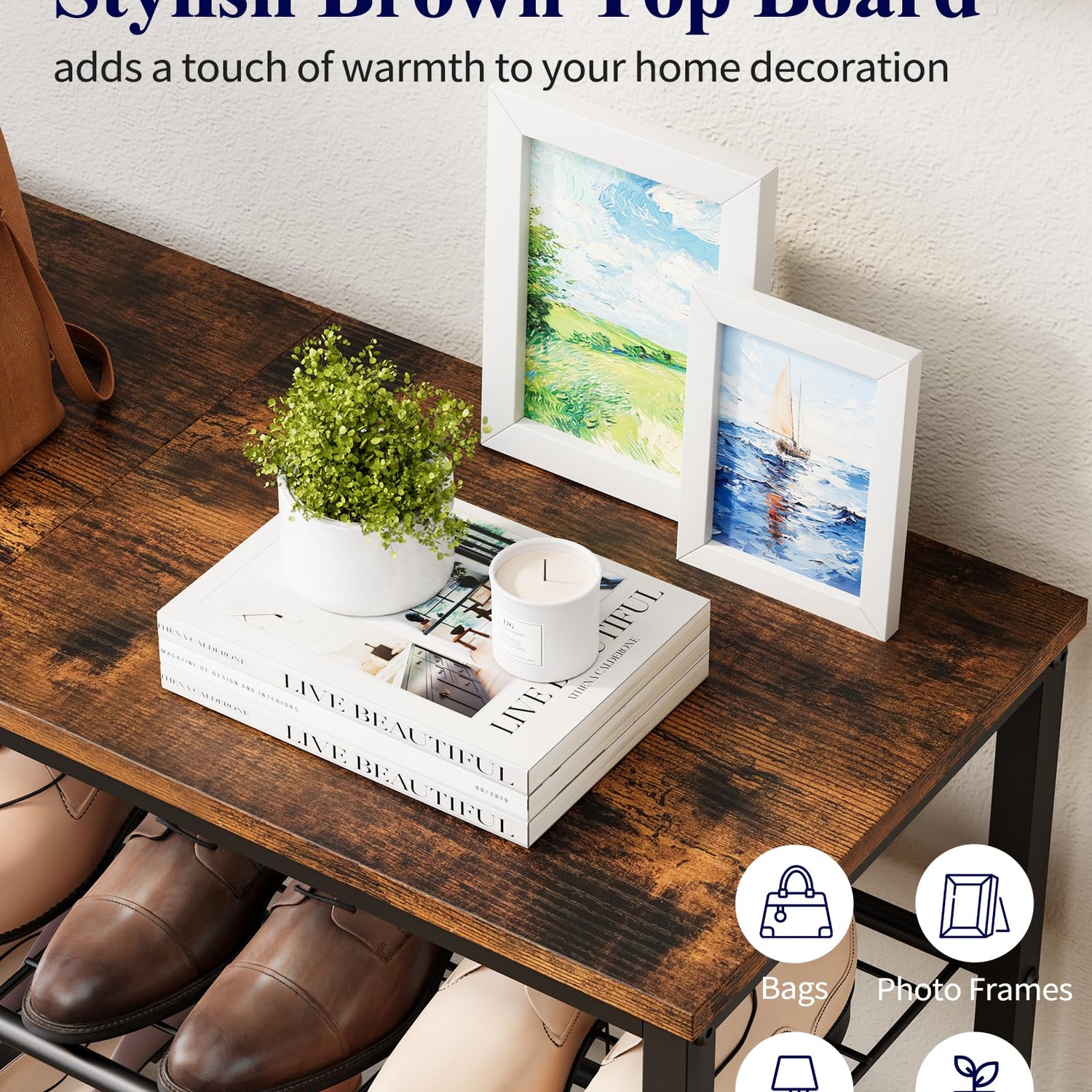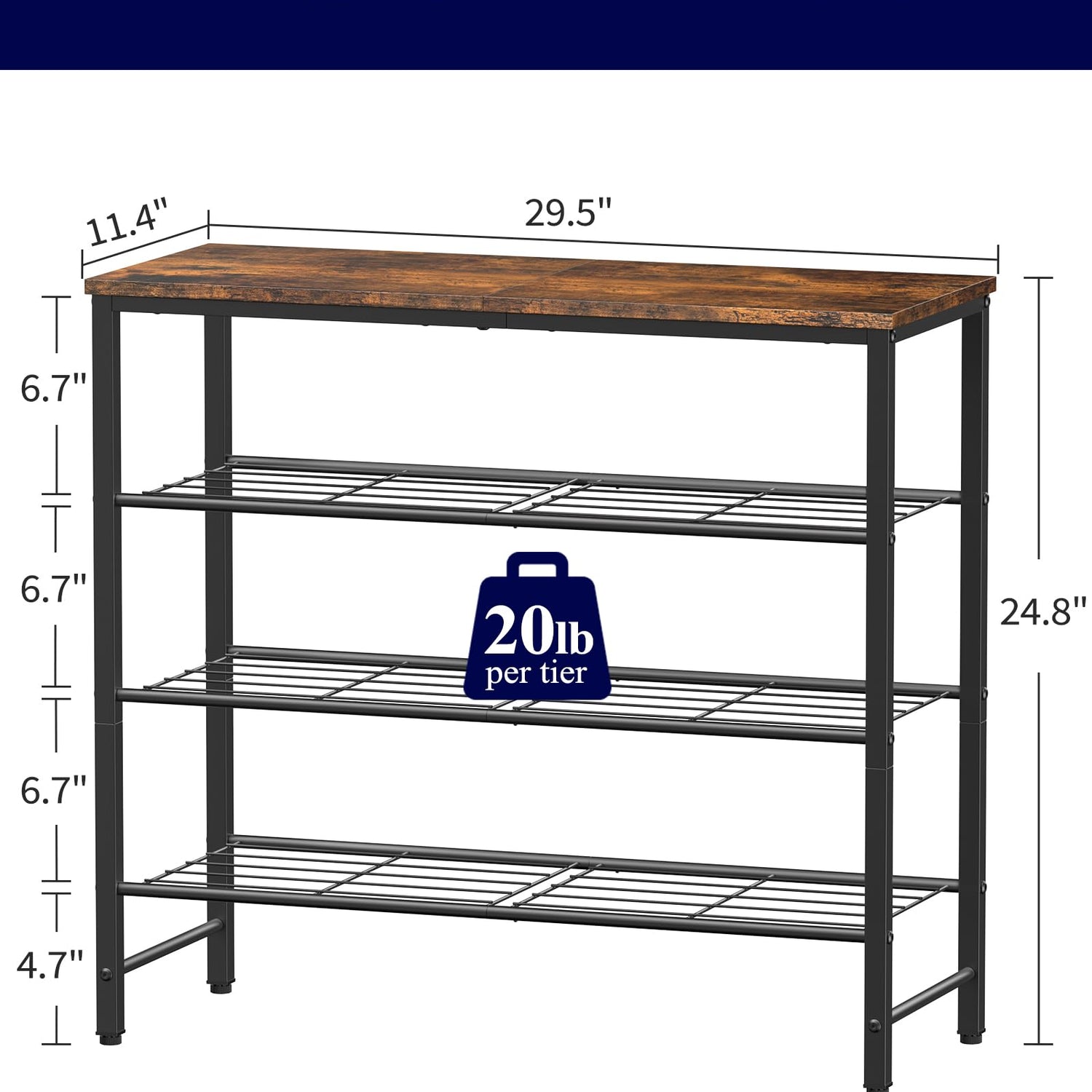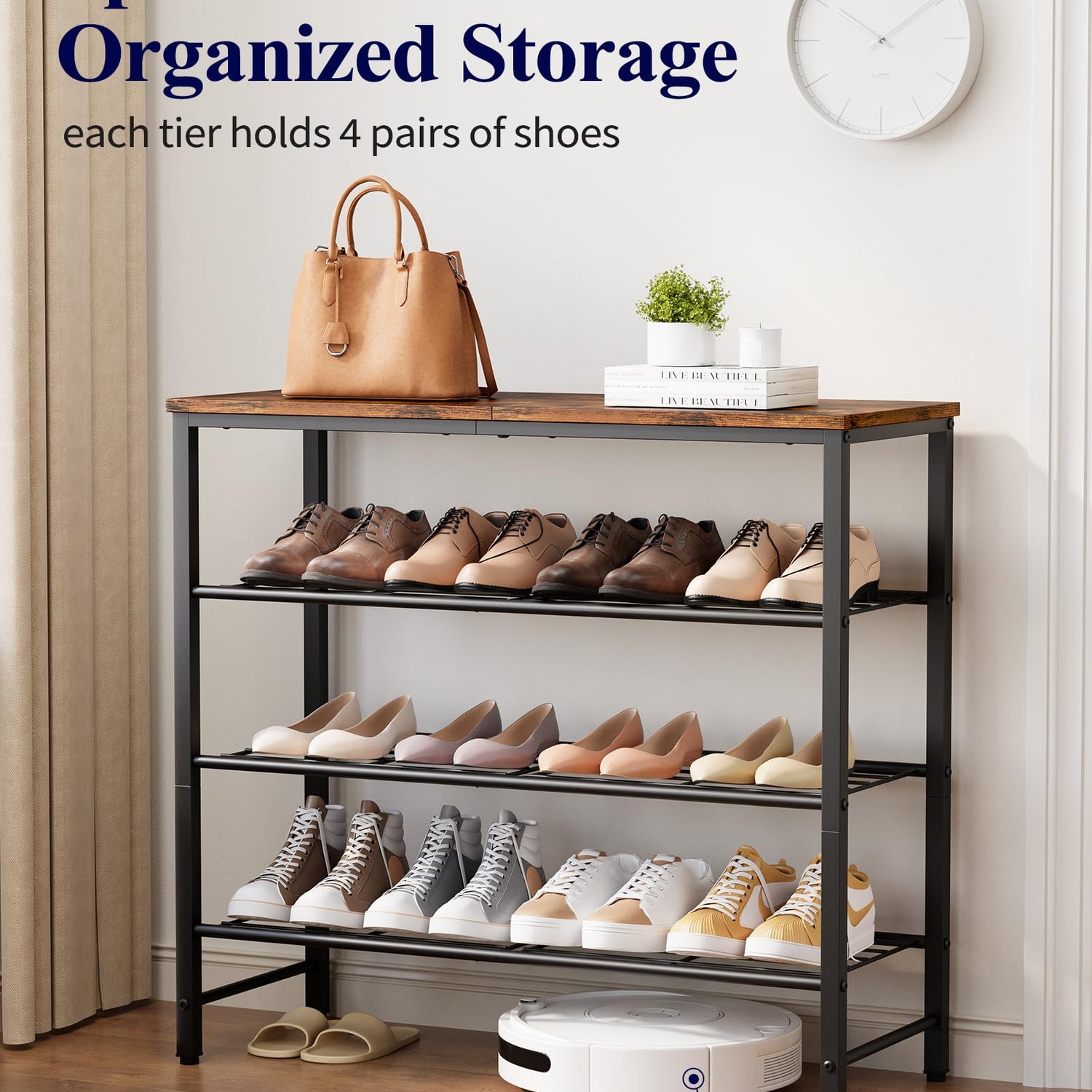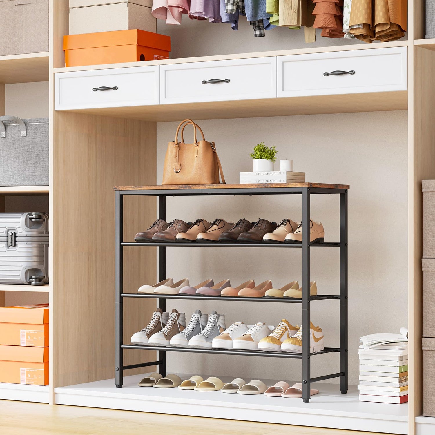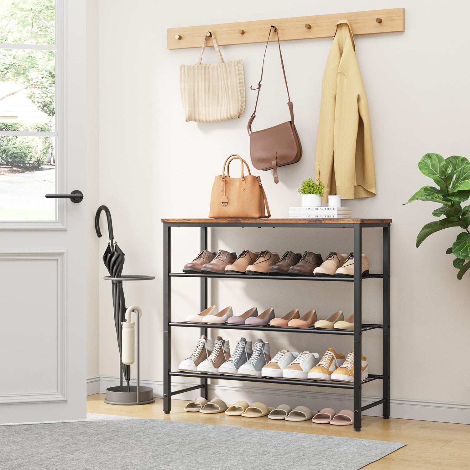 Kitsure Shoe Rack for Closet, Rustic Brown Shoe Organizer with Leveling Feet, Sturdy & Rust-Proof Shoe Storage for Entryway, Bedroom, Living Room, 29.5" x 11.4" x 24.8", Brown