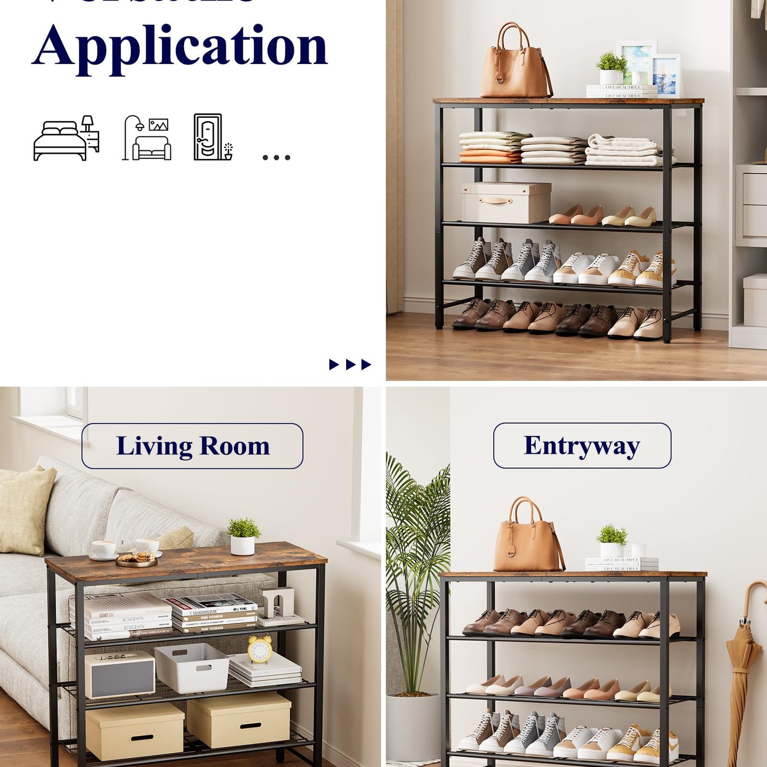 - WIDE APPLICATION: This shoe rack organizer comes with a compact and stylish design that fits effortlessly into any space. Whether used in your entryway, bedroom, or living room, its rustic style adds warmth and charm to your home while keeping your shoes organized and easily accessible.
