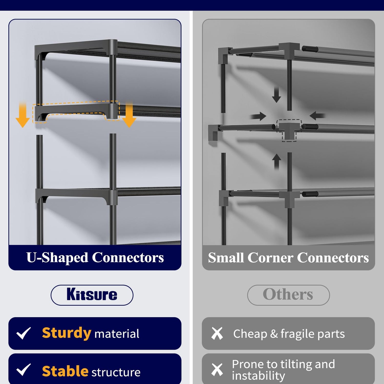 - STACKABLE DESIGN: Kitsure closet shoe organizer features a stackable design that is perfect for customizing storage to fit your space. You can pile up 2 or more racks to organize your shoes, bags, suitcases, and more in a limited space.