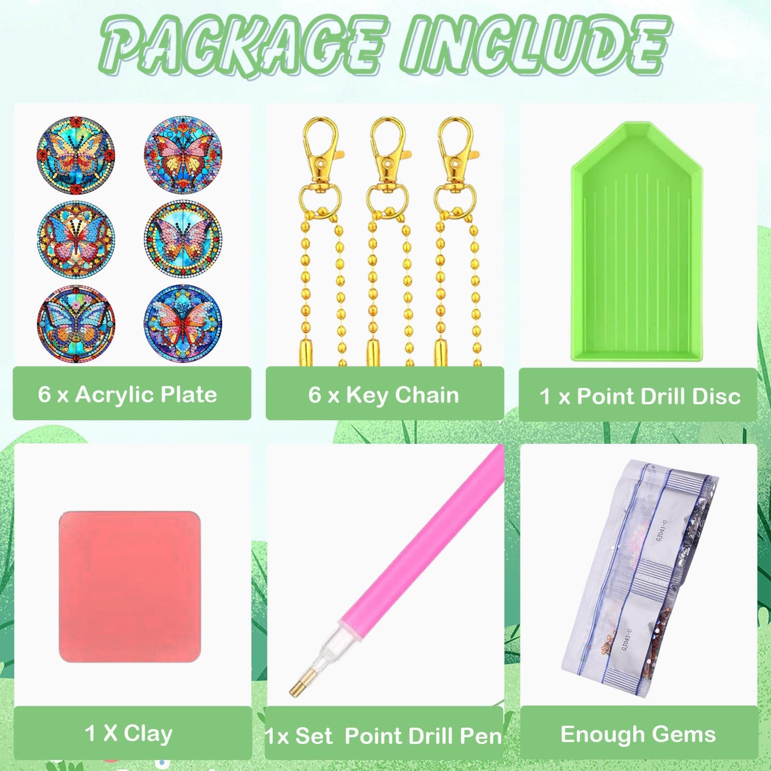 - Complete Tools: The package comes with 6 pcs of different styles of butterfly theme diamond art acrylic plate,6 key chain,1 point drill pen,1 clay , 1 point drill disc and enought rhinestones, sufficient number and complete combination to meet your diverse decorative needs.