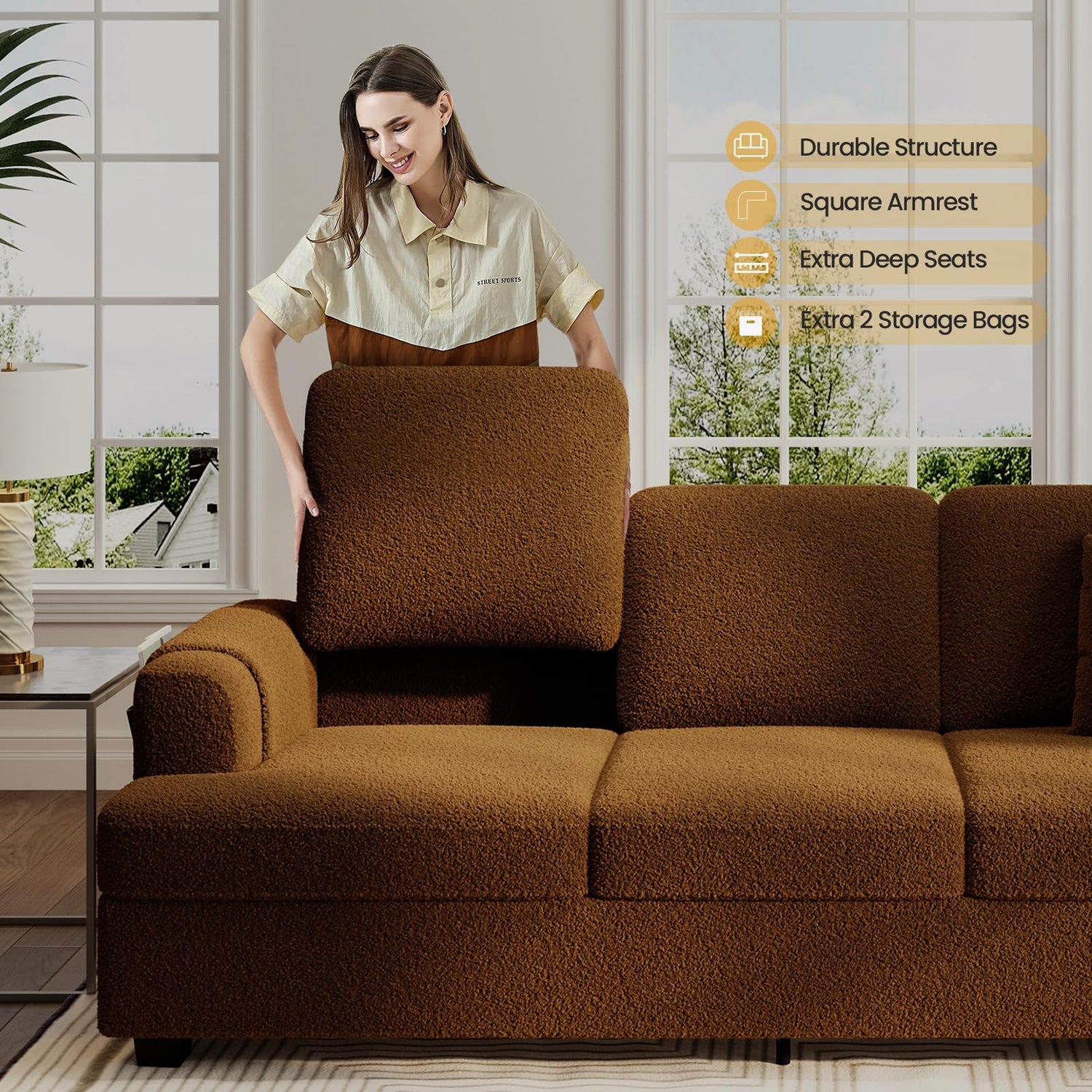 KKL 89 in Couches for Living Room, Modern Couch with Deep Seat, Home Sofa Living Room, 3 Seater Couch with Firm Structure, Comfy Couch, Brown Bouclé