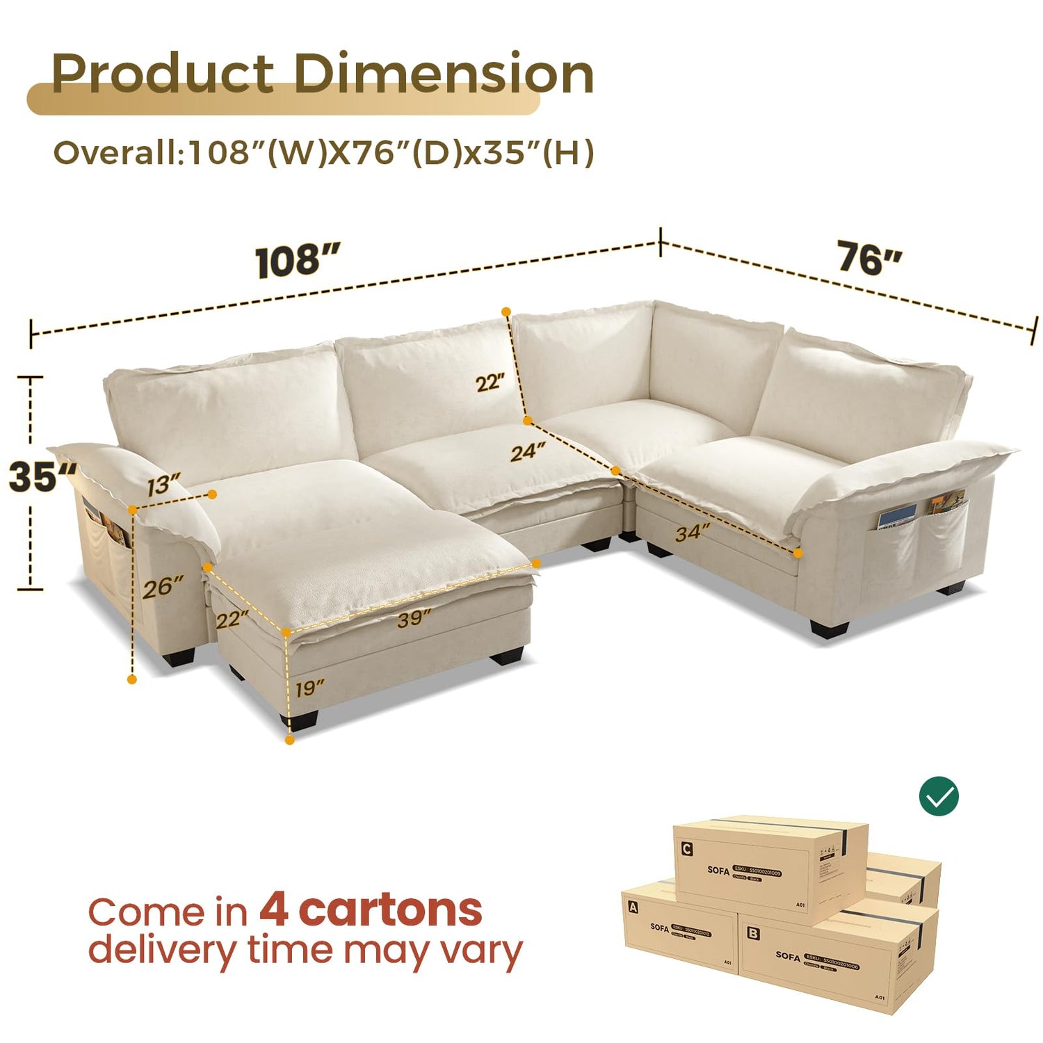 - Comfy Sectional Couch: The couches for living room feature 34-inch wide seats, a 20-inch seat height, 24-inch sectional with double-layer cushions, and a 22-inch high back cushion, offering a comfortable lounging experience