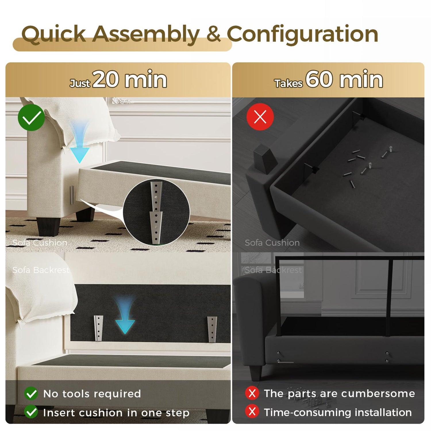 - Easy to Assemble: The couches for living room features a quick-insert design, allowing assembly in just 20-30 minutes without the need for bolts or screws, making setup simple and stress-free