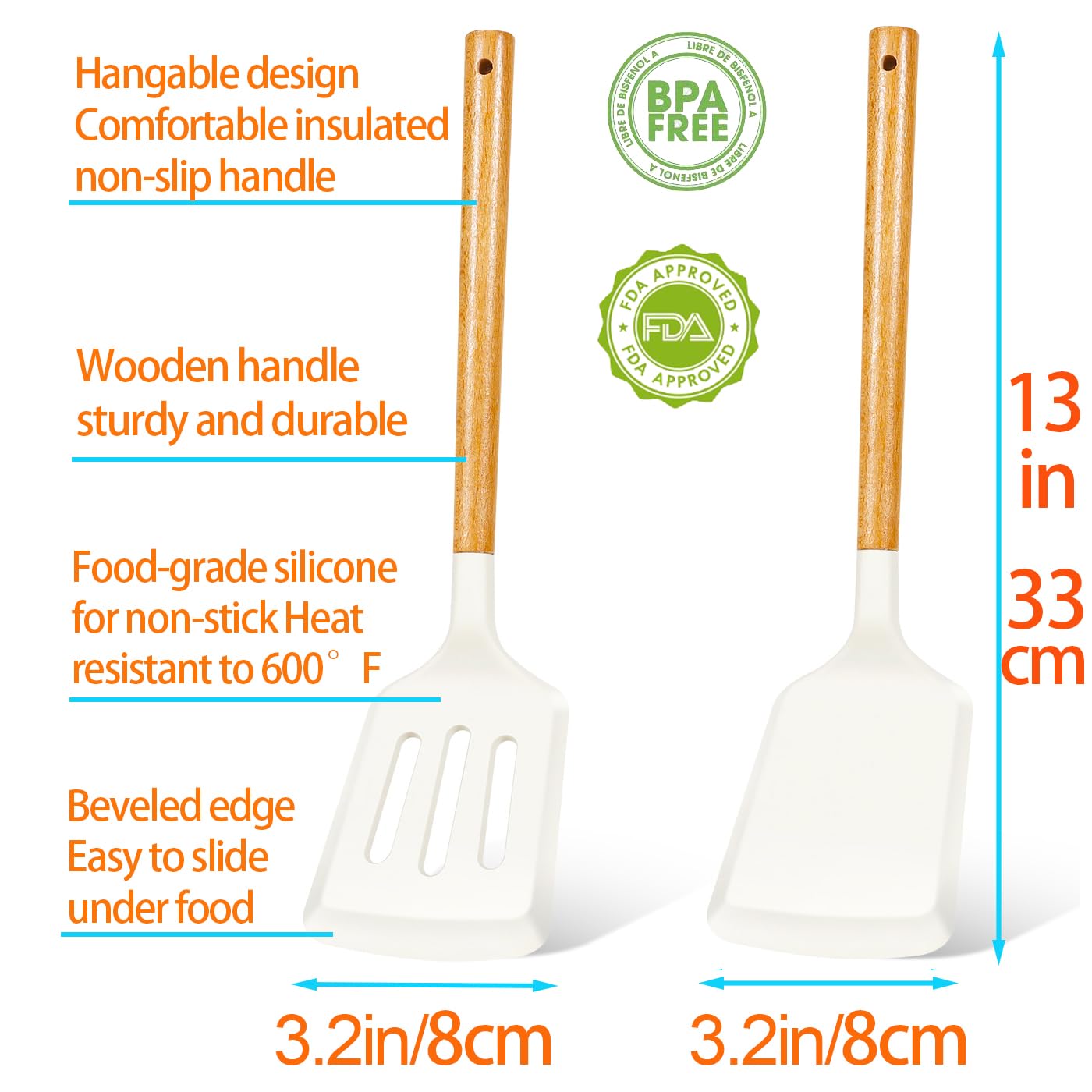- ✅【2 Silicone Spatulas】: The package contains a cooking spatula and a slotted spatula. The perfectly combined spatula set can help you make all kinds of delicious food!