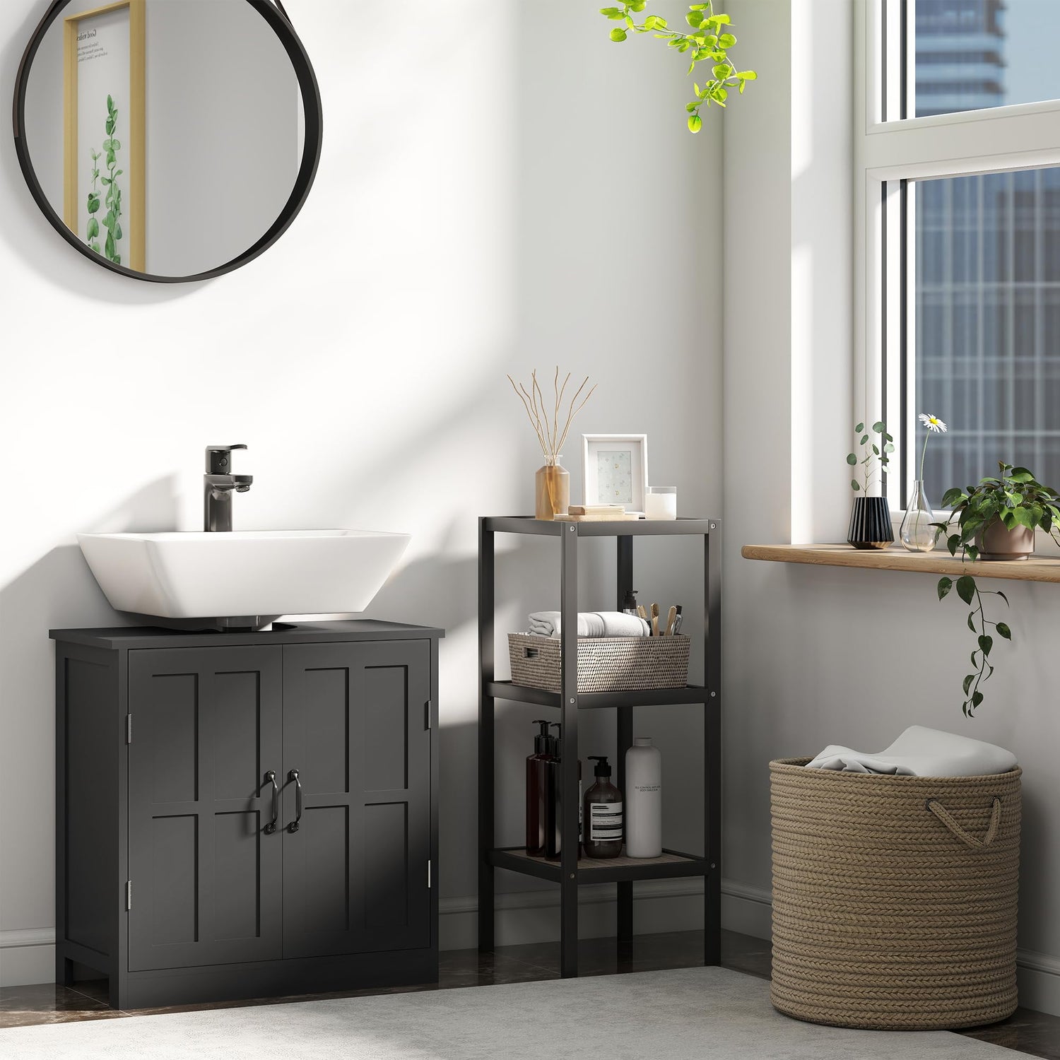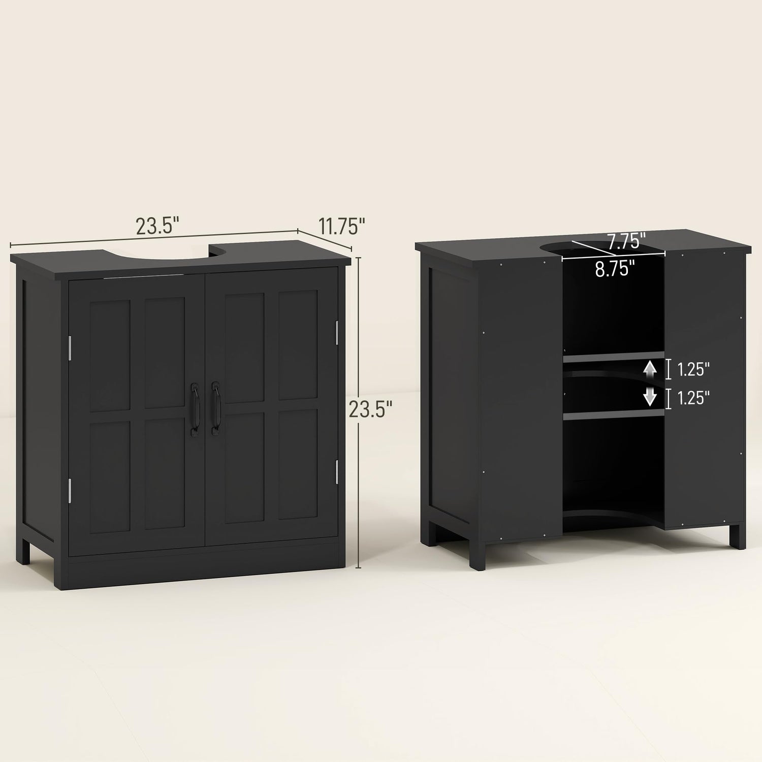 - Maximize Small Spaces: Running out of room in your bathroom? This under sink cabinet features a double-door design and a built-in shelf, great for storing toilet paper, towels, and cleaning supplies while keeping them dry and out of sight.