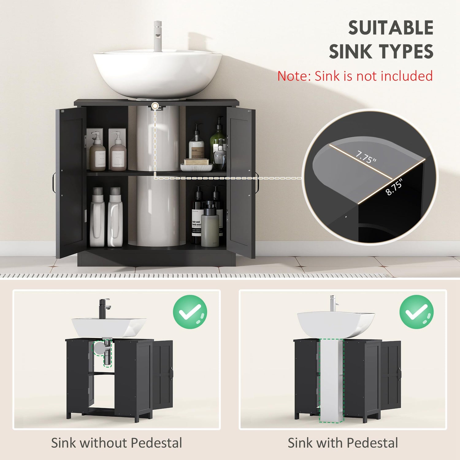 kleankin Pedestal Sink Storage Cabinet, Under Sink Cabinet with 2 Doors and Adjustable Shelf, Bathroom Vanity with U-Shape Cut-Out, Black