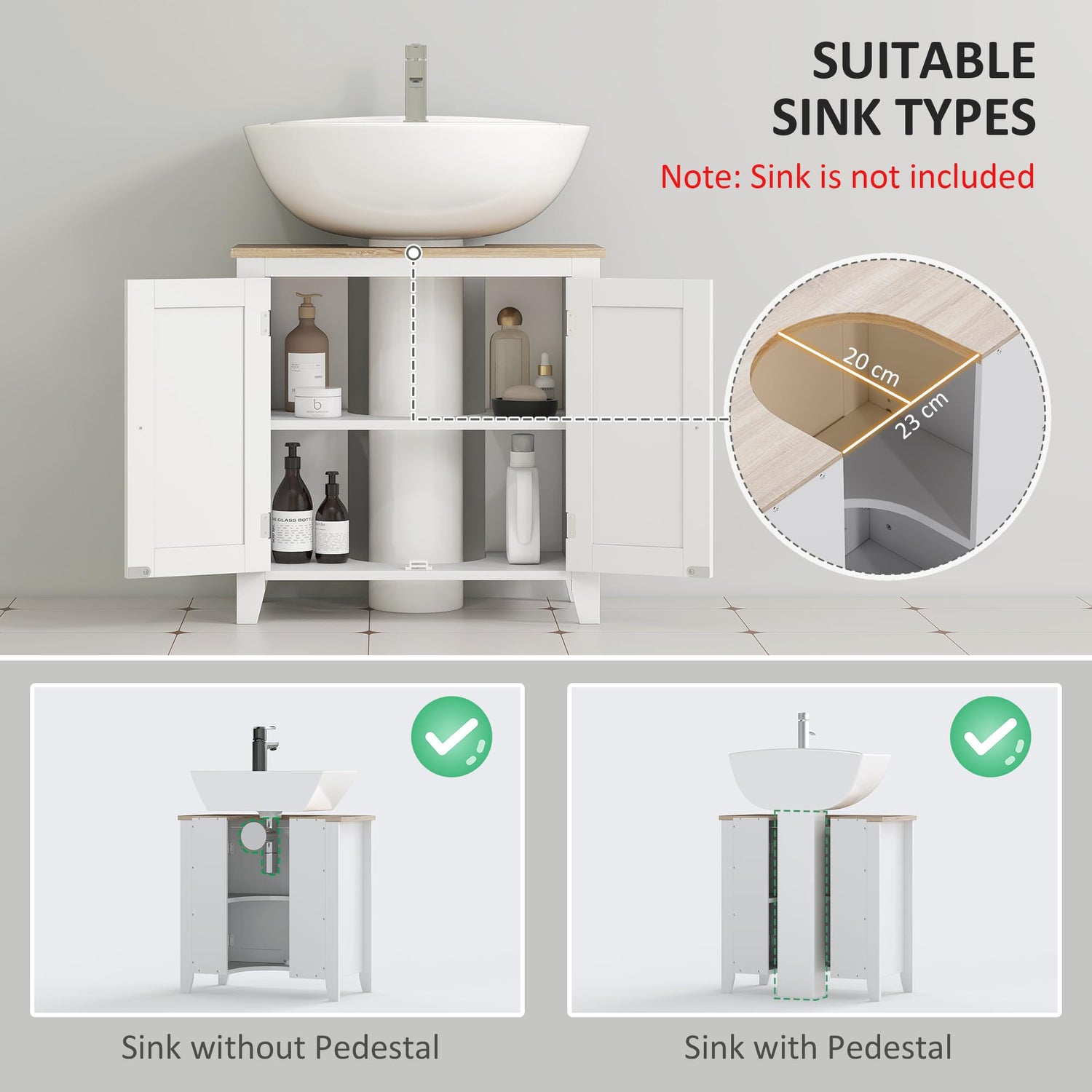 kleankin Pedestal Sink Storage Cabinet, Under Sink Cabinet with U-Shape and Adjustable Internal Shelf, White