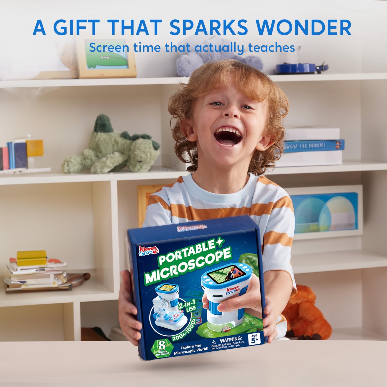 Klever Kits 2 in 1 Handheld Microscope for Kids, 1000X HD Digital Kids Microscope with 2.0'' LED Screen, Portable Pocket Handheld with Slides, 32G Card, Edu Gifts Toys for Ages 5-12