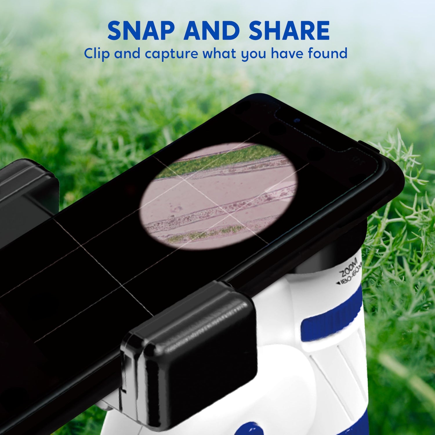 - Convenient Phone Holder: Featuring a removable phone holder, this microscope enables kids to effortlessly capture their observations and take photos of what they see through the lens. This makes each discovery interactive and enjoyable. This functionality encourages children to document their findings and share their exciting scientific adventures with family and friends.