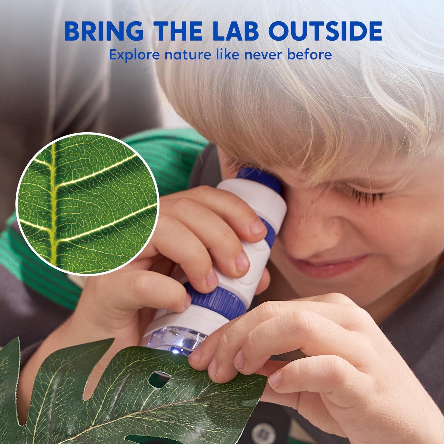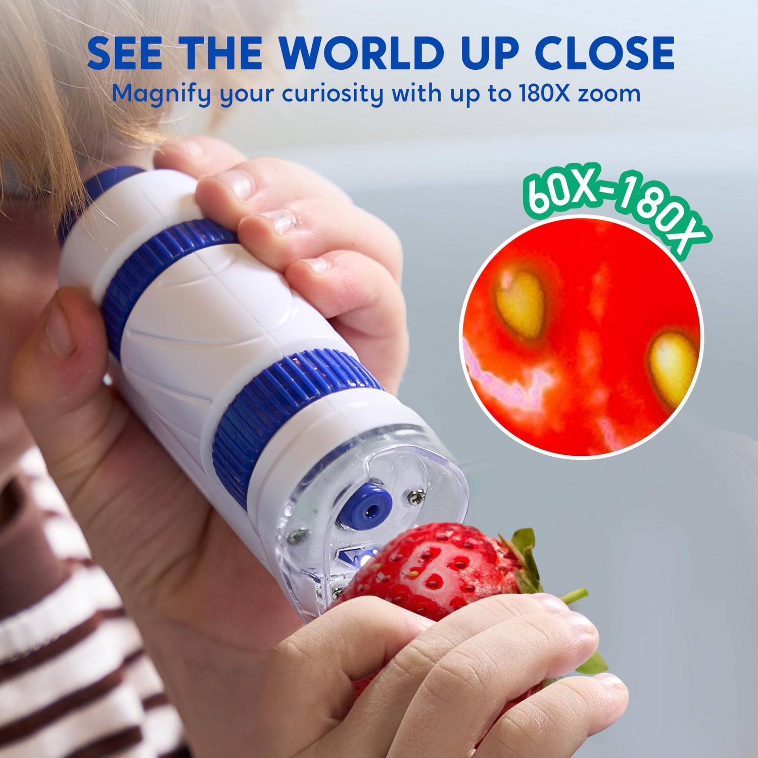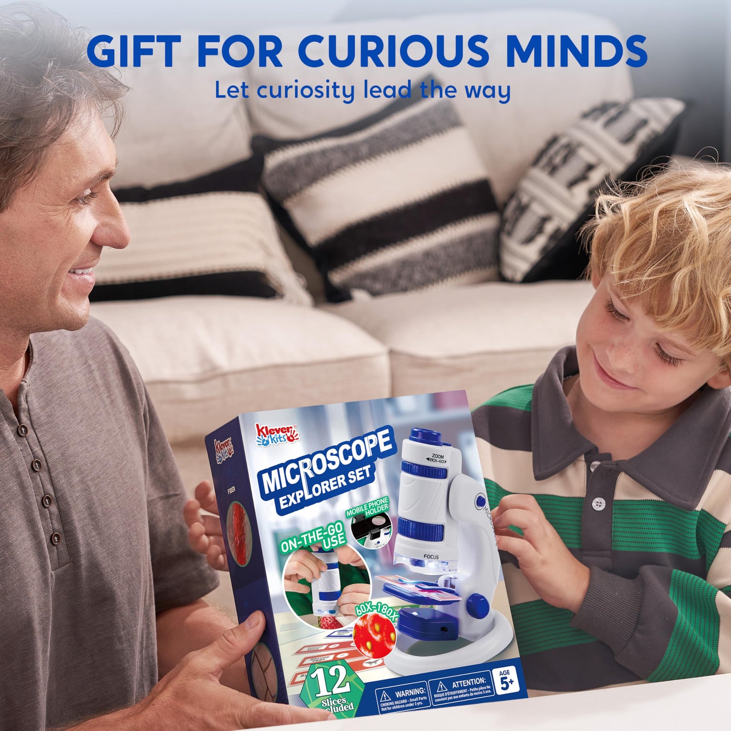 Klever Kits Microscope Explorer Set for Kids, 2 in 1 Science Experiment Toy with Portable Microscope and 12 Specimen Slides, 60X-180X, Educational Toys for Kids Aged 5+