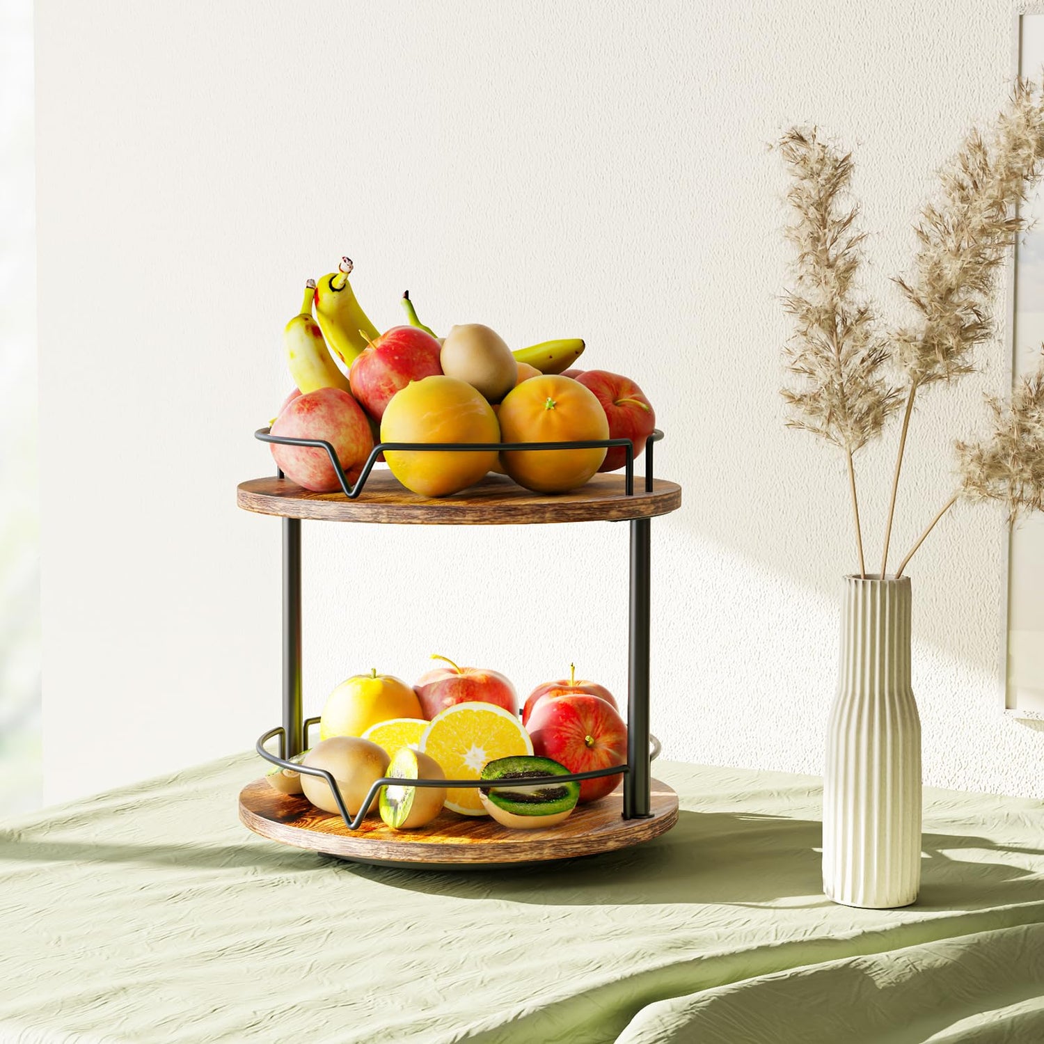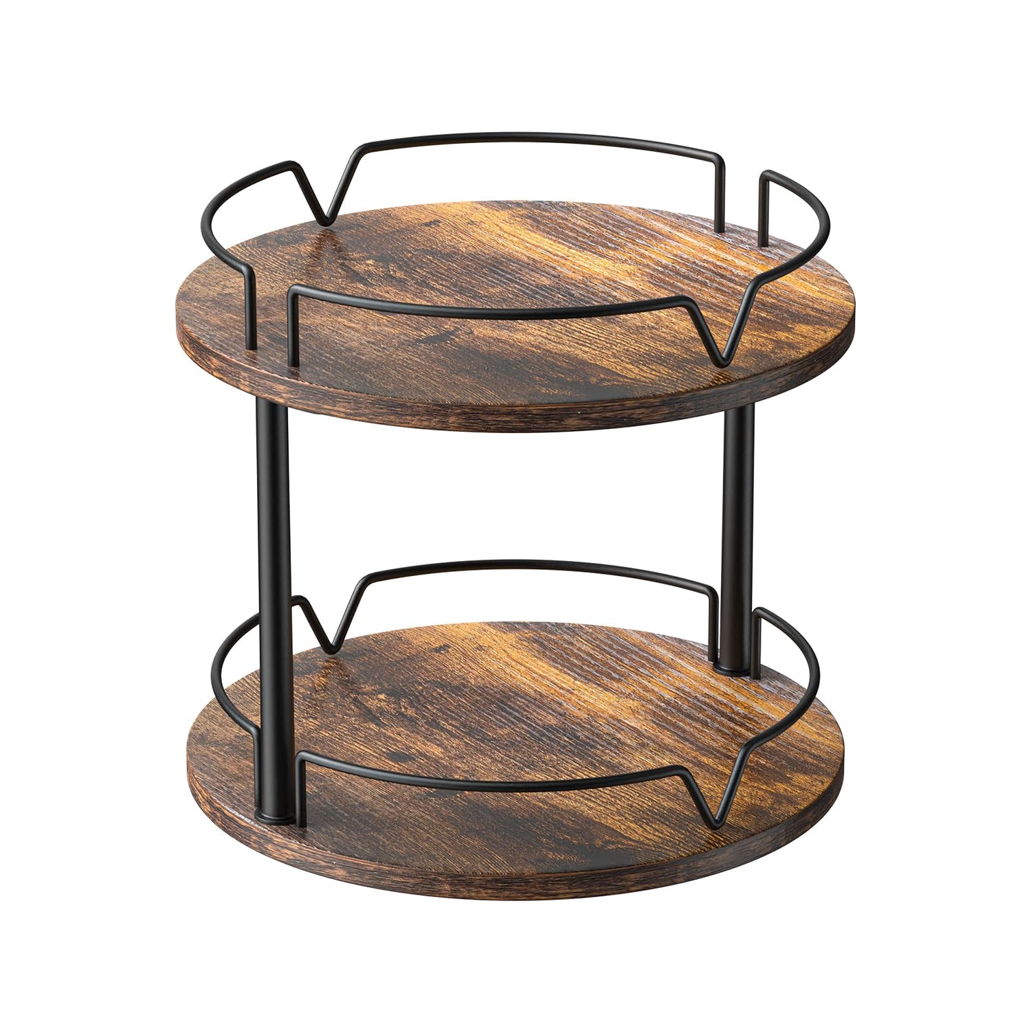 - Sturdy Construction: Crafted from durable wood with a rustic brown finish, this organizer's tiered design supports a variety of items while its ball-bearing base allows smooth, steady rotation.