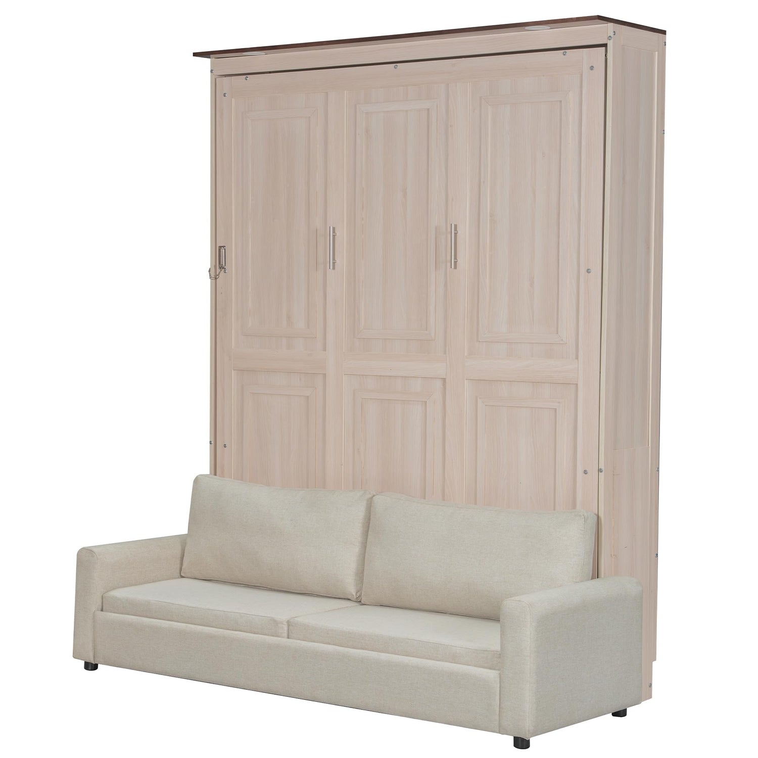 KLMM Queen Size Murphy Bed Wall Bed with Upholstered Sofa and LED Light,for Apartments Studio Bedroom Use (Beige/Sofa, Queen)