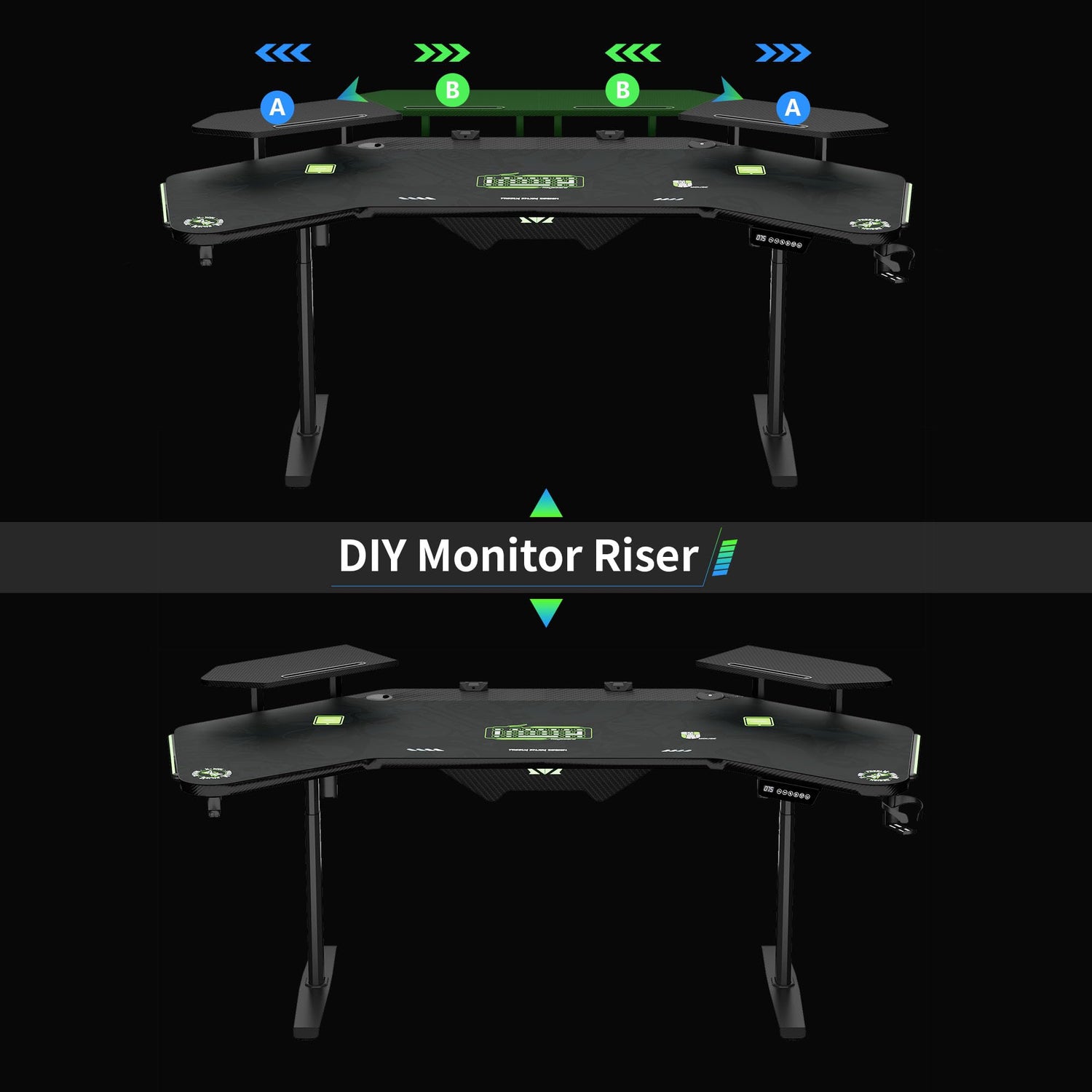 - 🎮【Next-Level Upgrade】-- Elevate your gaming setup with our latest enhancements! Firstly, we've upgraded to a dual motor system, ensuring greater weight capacity and smoother adjustments for seamless gaming sessions. Secondly, with one-click assembly and pre-installed desk legs, installation is quicker and easier than ever. Say hello to hassle-free setup and dive into your gaming adventure without delay!